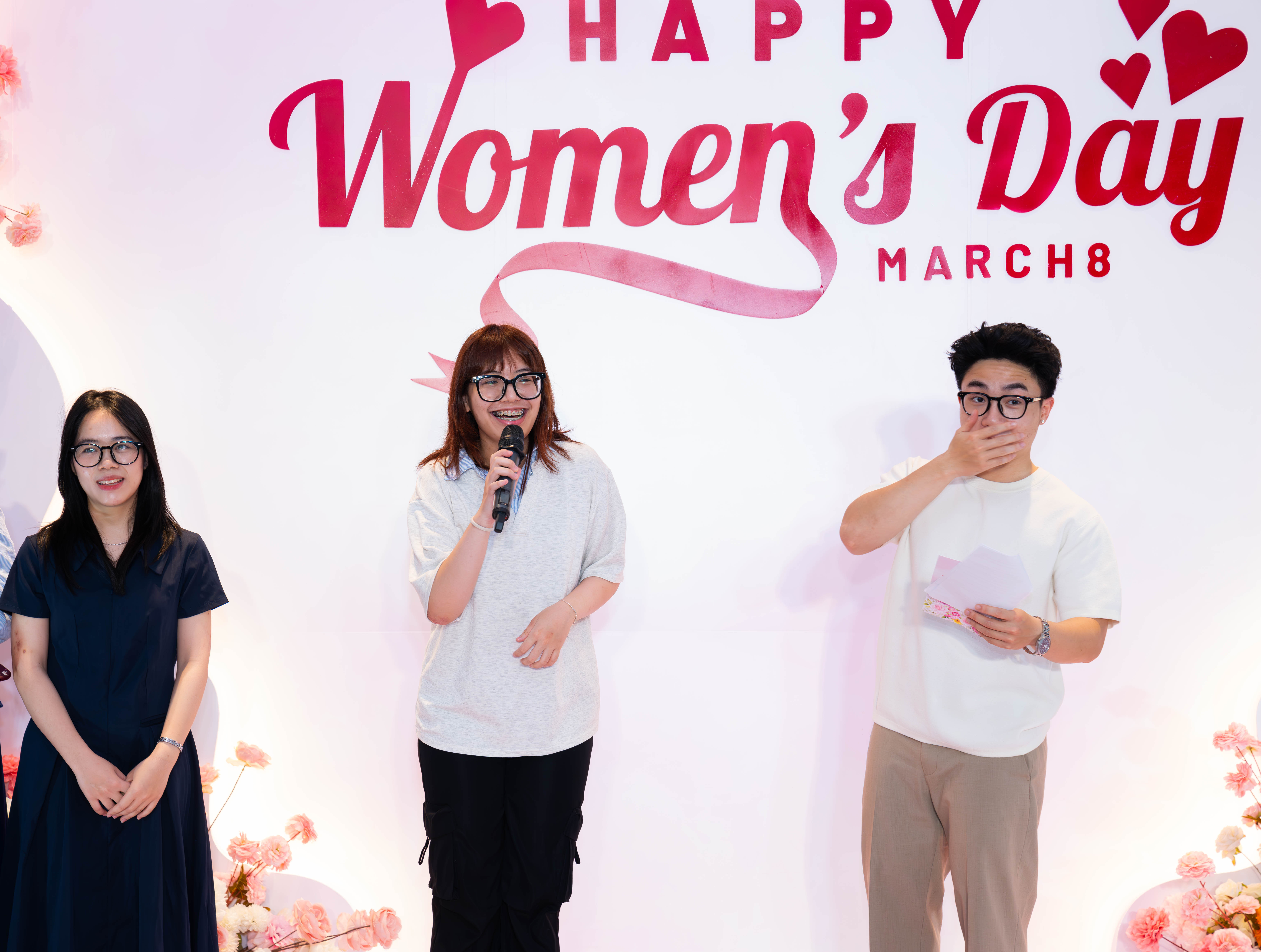 Một trong những điểm nhấn bùng nổ trong chương trình là phần minigame với các câu hỏi xoay quanh chủ đề ngày 8/3, phụ nữ và sự hiểu biết về nội bộ công ty. Các nữ cán bộ nhân viên hào hứng trả lời, thể hiện sự nhanh nhạy và hiểu biết của mình. Những phần quà ý nghĩa được trao tận tay người chiến thắng, góp phần lan tỏa niềm vui và sự gắn kết giữa các thành viên.