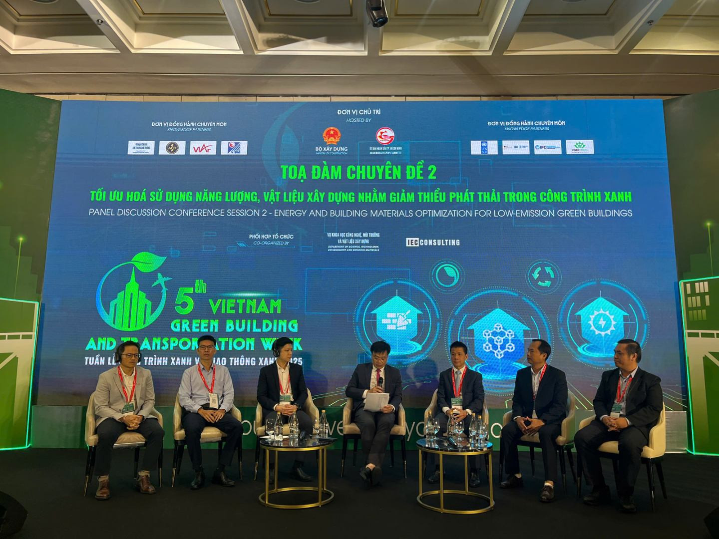 Ông Trịnh Ngọc Mẫn, Trưởng phòng Kỹ thuật Eurowindow (thứ hai từ trái sang), chia sẻ giải pháp vật liệu tiết kiệm năng lượng, cách nhiệt tại Tuần lễ Công trình Xanh và Giao thông Xanh Việt Nam 2025