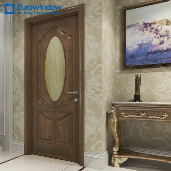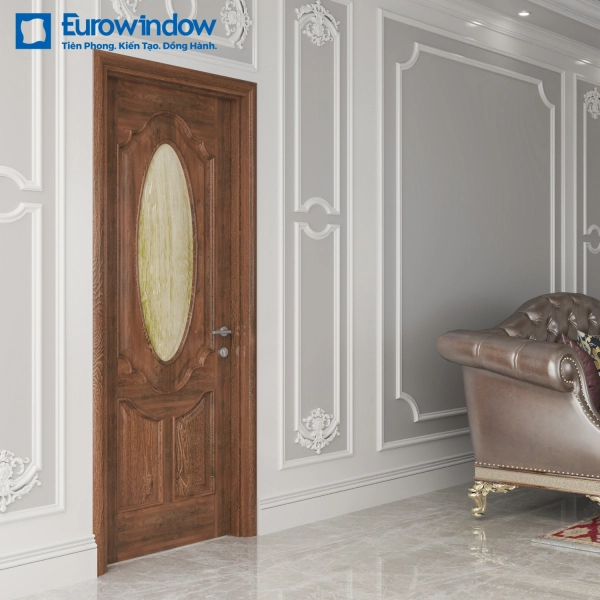 - Cửa gỗ Eurowindow sử dụng hệ gioăng cao su chuyên dụng, bản lề cân chỉnh được, hệ phụ kiện đồng bộ đảm bảo độ kín khít giúp cửa đóng mở êm.