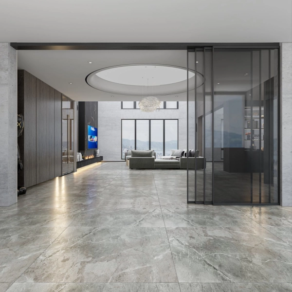 Thiết kế giấu ray treo khéo léo - không cần ray sàn mang lại vẻ đẹp tinh tế, liền mạch, đồng thời đảm bảo an toàn, thuận tiện vệ sinh. Đây là lựa chọn lý tưởng cho không gian cao cấp đòi hỏi sự tinh gọn, kết nối thông thoáng, liền mạch và sang trọng trong từng chi tiết.