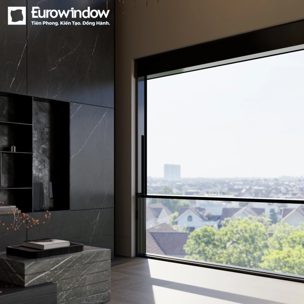 Thiết kế cải tiến, tích hợp đa công năng, hệ vách kính trượt dọc tự động Eurowindow lắp đặt trong các thiết kế cao tầng giúp dễ dàng thao tác, chuyển đổi ban công mở thoáng thành không gian phòng kín hay ngược lại. Giải pháp giúp tiết kiệm diện tích xây dựng, thể hiện được gu thẩm mỹ, cá tính riêng của khách hàng.