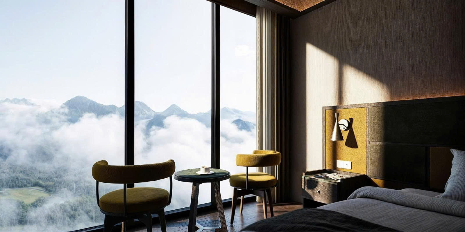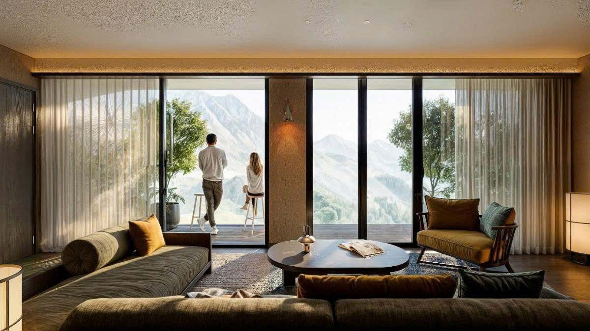 Kính hộp và kính dán an toàn trong hệ mặt dựng không chỉ tăng cường độ bền mà còn giúp du khách tận hưởng trọn vẹn tầm nhìn “triệu đô” ra thung lũng Mường Hoa, đỉnh Fansipan hay dãy Hoàng Liên Sơn,... Đây chính là yếu tố quan trọng tạo nên giá trị khác biệt cho các phòng khách sạn hạng sang tại Bản Mòng.