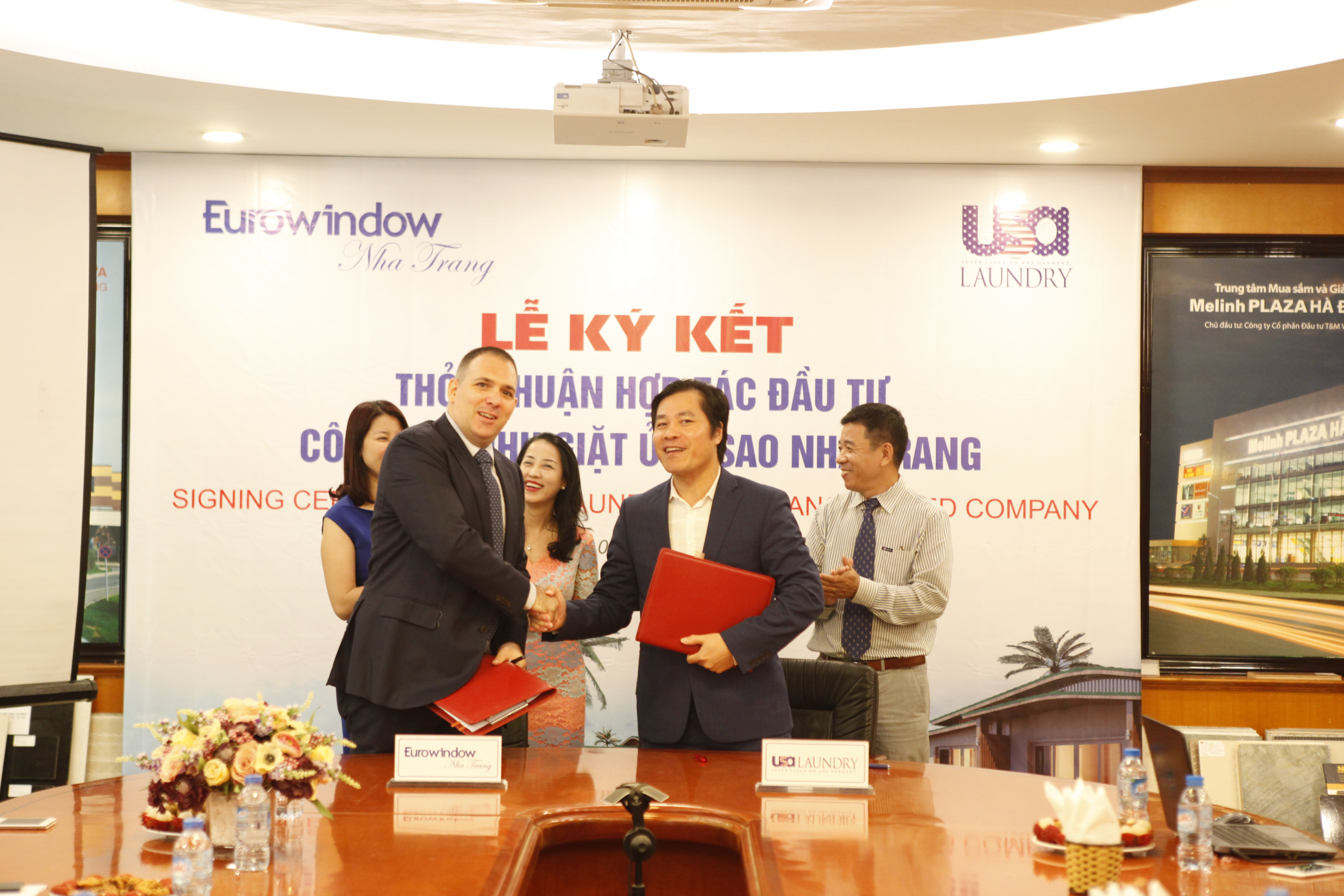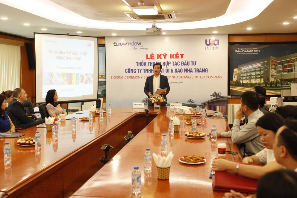 Sáng ngày 5/9, tại Hà Nội đã diễn ra lễ ký kết hợp tác đầu tư dự án Nhà máy giặt ủi tập trung 5-star Laundry Nha Trang giữa Công ty CP Đầu tư Du lịch Eurowindow Nha Trang và Công ty TNHH Thương mại Quốc tế & Đầu tư Anh Kiệt (USA Laundry).