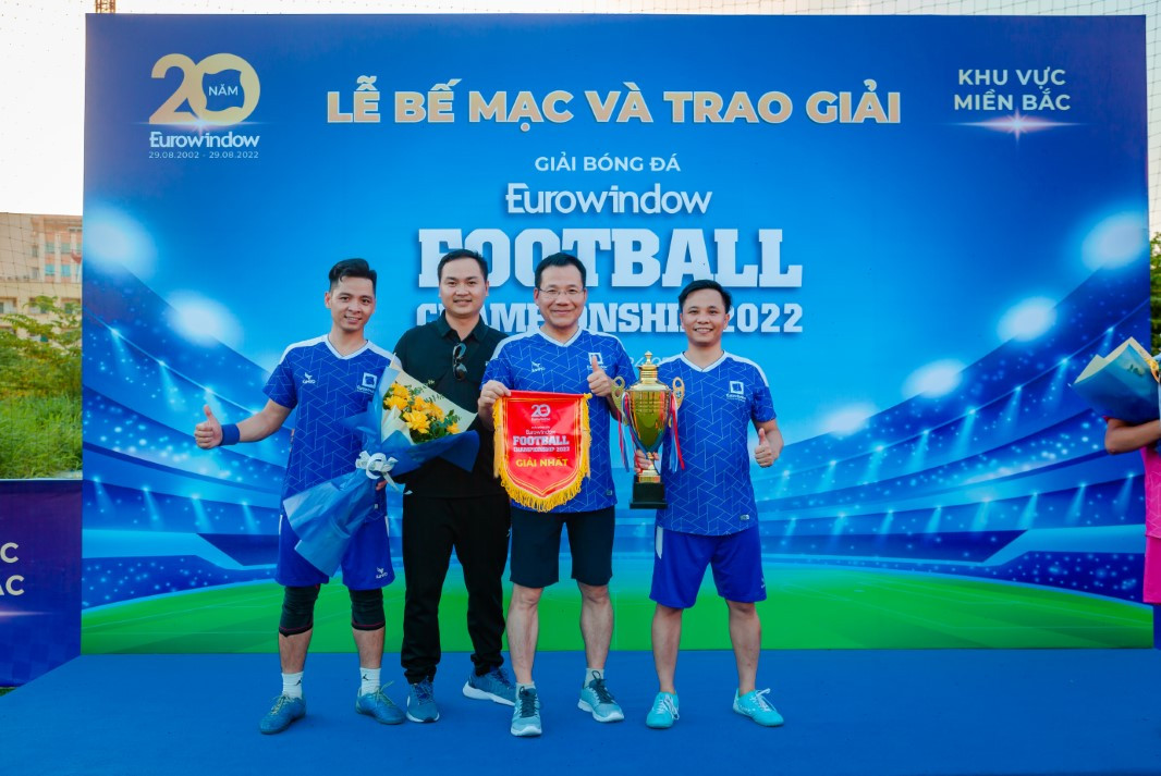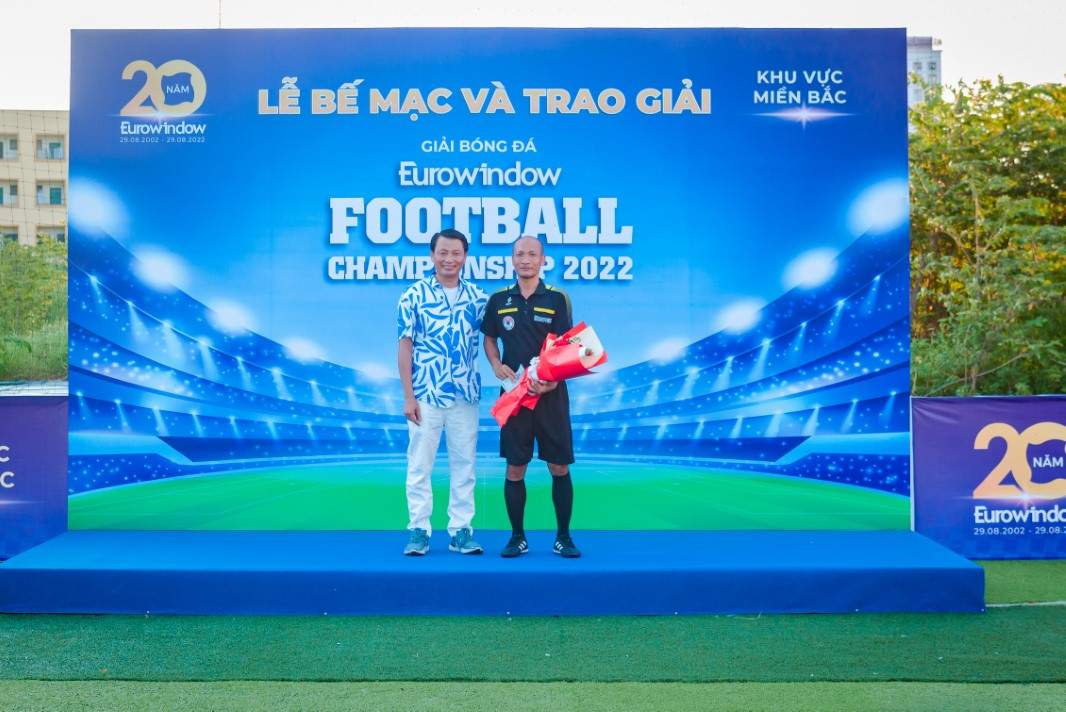 Cũng trong khuôn khổ lễ bế mạc, Phó Tổng Giám đốc cùng lãnh đạo các phòng ban đã thay mặt Ban lãnh đạo công ty trao thưởng cho 4 đội bóng xuất sắc nhất và tặng hoa cảm ơn Tổ trọng tài. Giải bóng đá Eurowindow Football Championship 2022 đã khép lại với nhiều niềm vui và tiếc nuối, nhưng dấu ấn đậm nét nhất chính là tinh thần thể thao đoàn kết và cao thượng của các cầu thủ Eurowindow.
