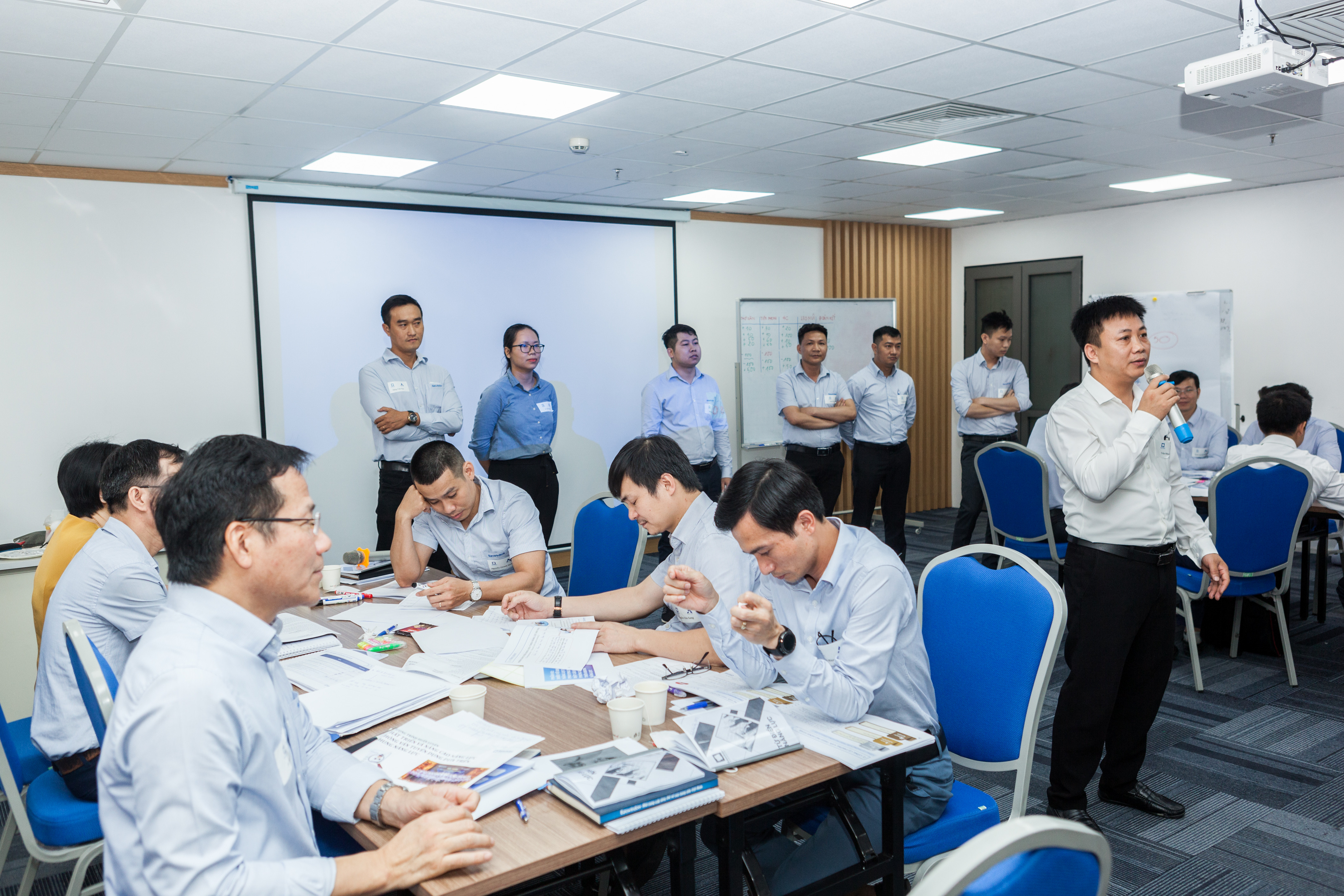 Để tạo không khí trao đổi hào hứng, sôi nổi, ngoài những phần chia sẻ lý thuyết, giảng viên còn tổ chức hoạt động nhóm hiệu quả. 40 học viên được chia thành 5 nhóm ngẫu nhiên để làm bài tập, thảo luận và trình bày với các chủ đề khác nhau liên quan tới bài giảng. Bên cạnh đó, phần hoạt động nhóm cũng được khuấy động hơn với phần thể thao nâng cao sự tập trung cho học viên. Các bài tập cũng được xây dựng dựa trên tình huống thực tế về hoạt động kinh doanh của Eurowindow.