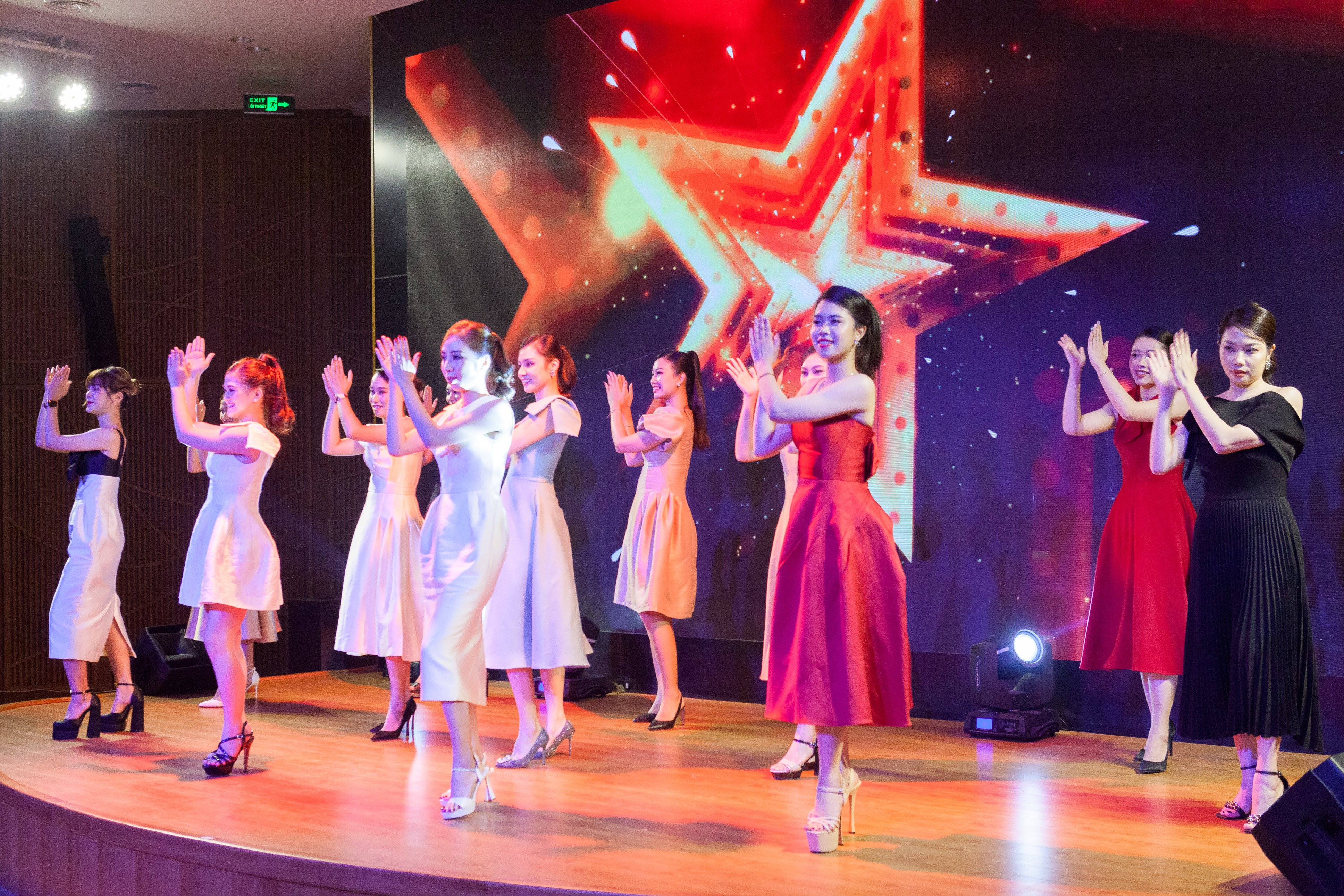 12 cô gái xinh đẹp và tài năng tham dự vòng chung kết chụp ảnh lưu niệm cùng đại diện BTC, BGK cuộc thi Miss Eurowindow Open 2022.