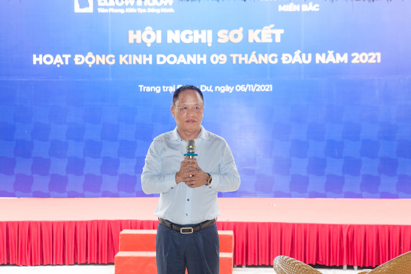 Tại buổi lễ, Ông Bùi Quốc Bình – Giám đốc kinh doanh miền Bắc đã thay mặt BLĐ khối báo cáo cụ thể về tình hình nhân sự, kết quả doanh số, doanh thu đến hết quý III/2021. Theo đó, trong 9 tháng đầu năm, đội ngũ kinh doanh khu vực miền Bắc đã nỗ lực hoàn thành 93% doanh số kế hoạch, trong đó có 2 phòng kinh doanh xuất sắc hoàn thành vượt mục tiêu là Phòng Kinh doanh Nhà riêng KV tỉnh miền Bắc (hoàn thành 101% DSKH) và Phòng Kinh doanh Dự án 1 (hoàn thành 147% DSKH).