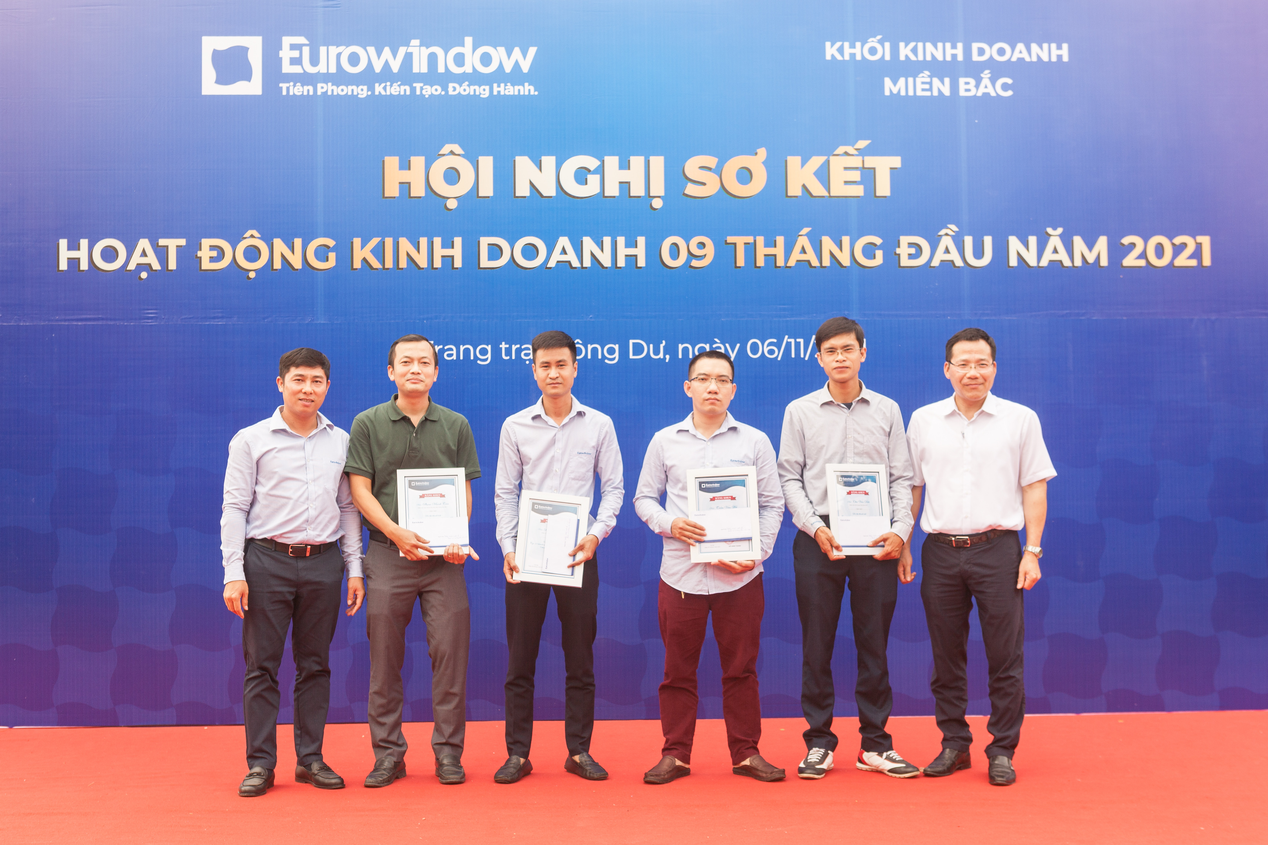 Ngày 06/11 vừa qua, khối Kinh doanh miền Bắc Eurowindow đã tổ chức hội nghị sơ kết hoạt động kinh doanh 9 tháng đầu năm 2021 với sự tham gia của Ban lãnh đạo Công ty, lãnh đạo khối kinh doanh, cán bộ quản lý từ cấp trưởng Showroom/Bộ phận trở lên và các nhân viên kinh doanh xuất sắc của Kinh doanh miền Bắc.