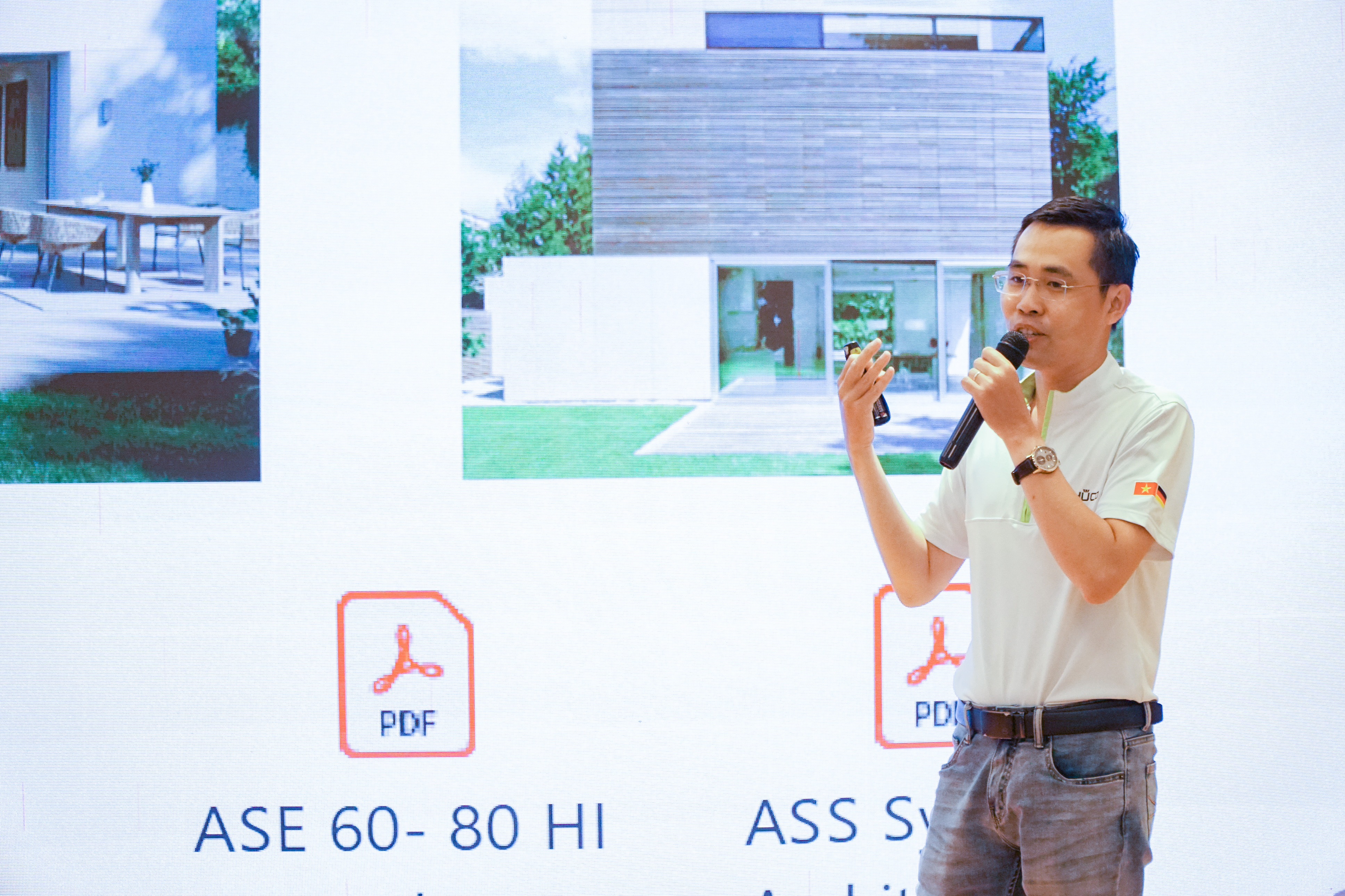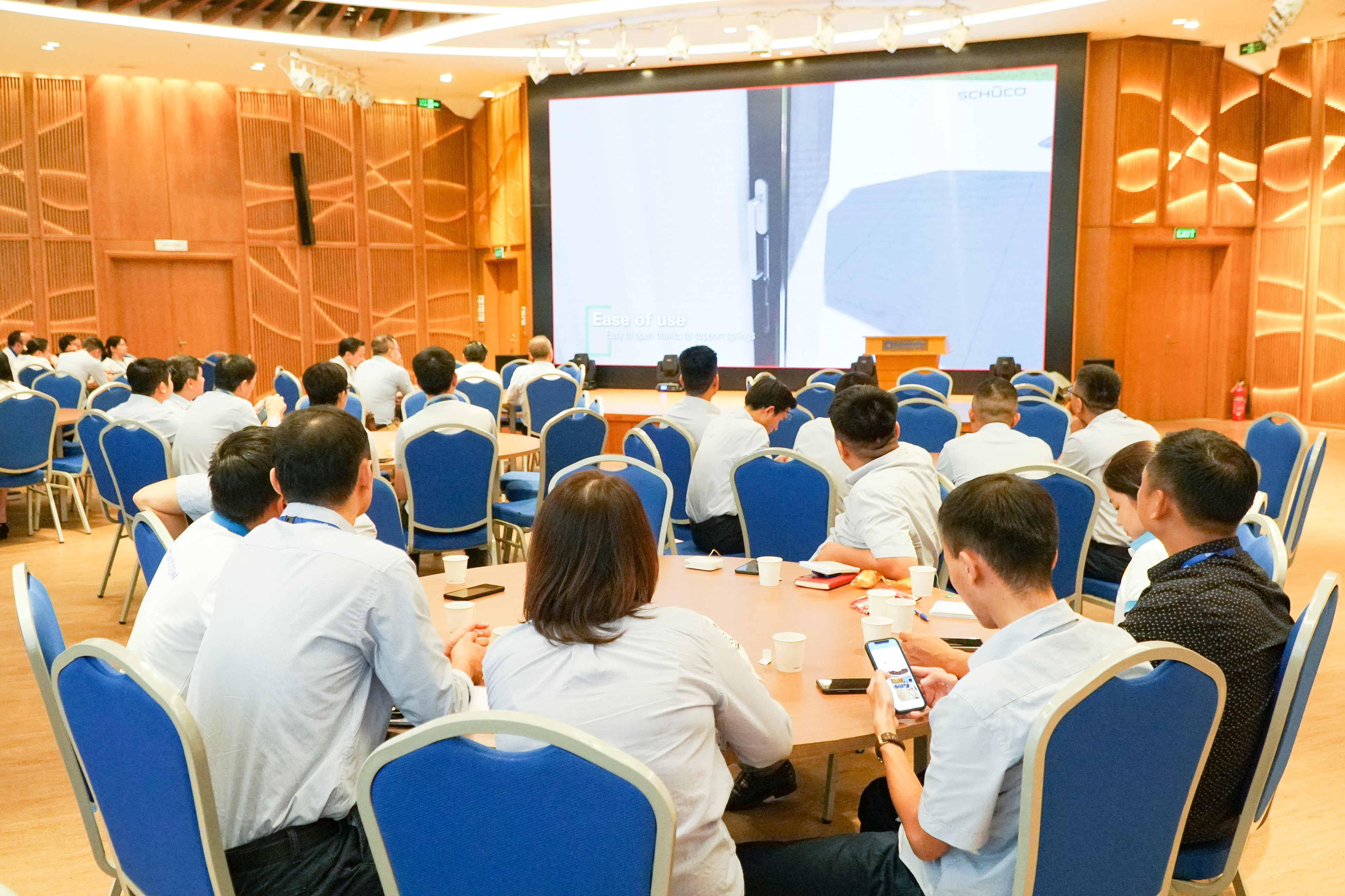Trong khuôn khổ chương trình đào tạo, đại diện nhà sản xuất Schueco đã thông tin chi tiết về ưu điểm, tính năng ưu việt đi kèm thông số kỹ thuật, tiêu chuẩn kỹ thuật của từng dòng sản phẩm bao gồm: cửa sổ mở quay/mở hất/mở quay lật AWS 50, cửa sổ mở quay/mở quay lật AWS 65, cửa sổ mở trượt ASS 39 SC, cửa đi ADS 50, cửa đi mở trượt – nhấc trượt ASS 50, cửa đi gấp trượt ASS 70 FD, hệ vách dựng lộ đố FWS 50, hệ vách dựng dấu đố FWS 50 SG...