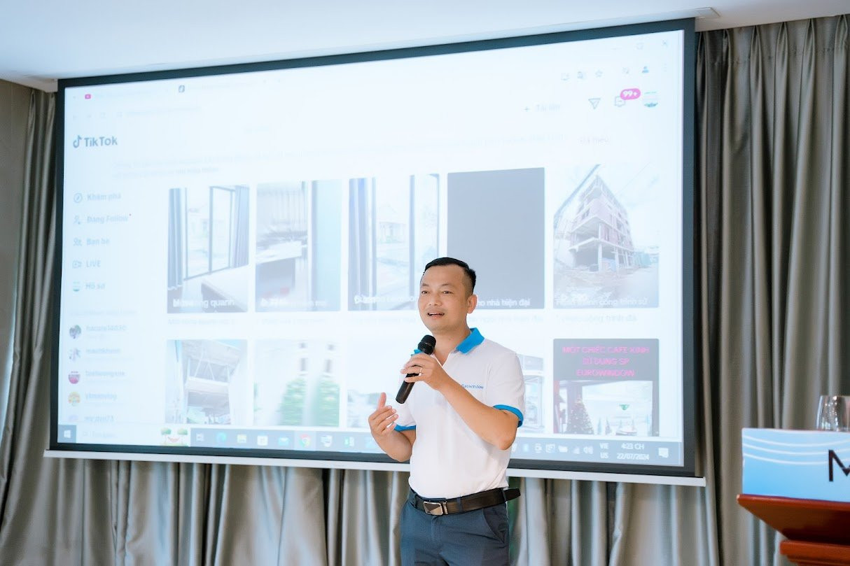 Ông Nguyễn Đức Tú - Đại diện phòng Marketing chia sẻ kiến thức tới đội ngũ NVKD về cách phát triển và khác thác hiệu quả các kênh bán hàng online.
