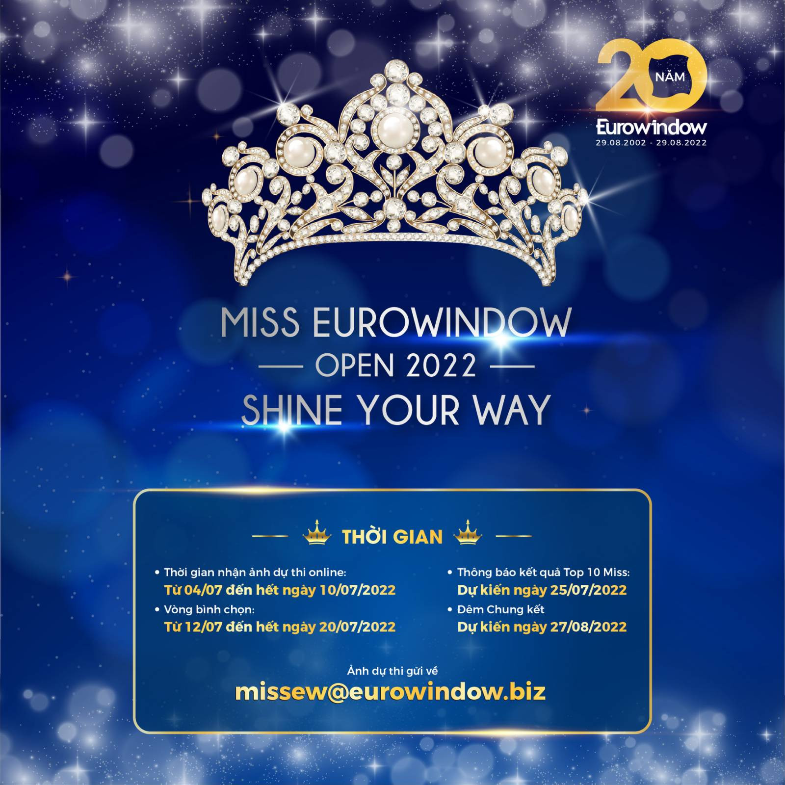 Nằm trong chuỗi hoạt động hướng tới kỷ niệm 20 năm ngày thành lập (29/08/2002 – 29/08/2022), Eurowindow phát động Cuộc thi Miss Eurowindow Open 2022 – Shine Your Way dành riêng cho nữ CBCNV Eurowindow, Eurowindow Holding, các công ty thành viên.