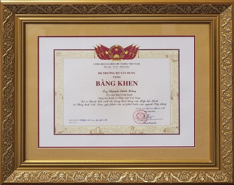 Bằng khen của Bộ Xây dựng do Bộ trưởng Phạm Hồng Hà ký tặng. Đây là sự ghi nhận dành cho những thành tích xuất sắc của cá nhân ông Nguyễn Cảnh Hồng - Tổng giám đốc Eurowindow trong hoạt động phát triển Hiệp hội Kính và Thủy tinh Việt Nam nói riêng và đóng góp vào sự nghiệp phát triển của ngành Xây dựng nói chung.
