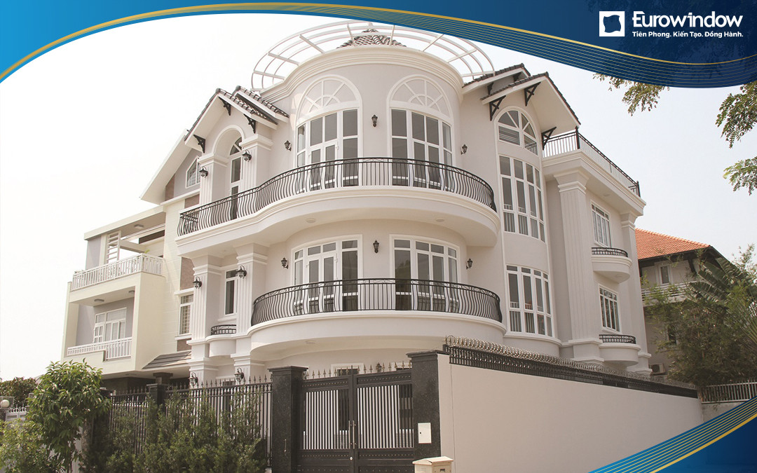 Công trình biệt thự hiện đại sử dụng sản phẩm cửa nhựa lõi thép gia cường uPVC do Eurowindow cung cấp, lắp đặt.