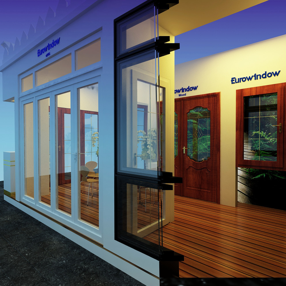 Dòng sản phẩm cửa nhựa uPVC thương hiệu Eurowindow sử dụng thanh profile uPVC định hình của hãng Koemmerling (CHLB Đức) có lắp lõi thép gia cường, tăng khả năng chịu lực, kết hợp với hệ gioăng kép và hộp kính được bơm khí trơ đảm bảo độ kín khít cao, cách âm, cách nhiệt tốt. Tại triển lãm Myanbuild, Eurowindow trưng bày sản phẩm cửa sổ mở quay lật, cửa đi dán laminate và cửa đi gấp trượt 4 cánh có ưu điểm có thể mở ra bằng cách trượt và xếp trên ray hoặc mở quay cánh, giúp tạo không gian thoáng rộng cho người sử dụng. Loại cửa này mở được với diện tích lớn nên đặc biệt thích hợp với những công trình có thiết kế cửa đi rộng ra vườn hay ra hồ bơi.
