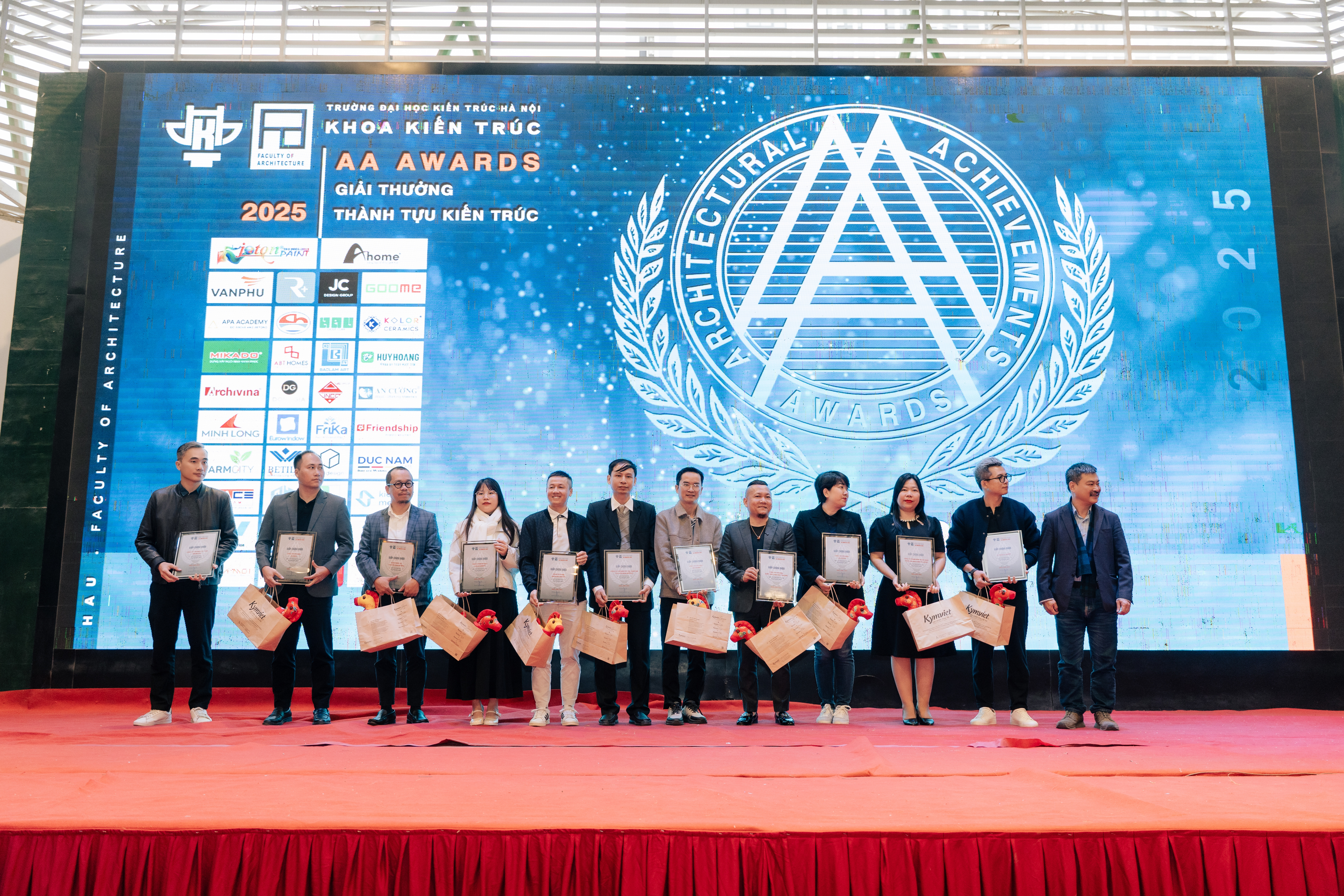 Ngày 27/12, Trường Đại học Kiến trúc Hà Nội đã tổ chức Lễ trao giải Thành tựu Kiến trúc – AA AWARDS 2025. Đây là giải thưởng thường niên của Khoa Kiến trúc nhằm vinh danh những sinh viên ưu tú ngành Kiến trúc sở hữu đồ án xuất sắc trong năm học. Thông qua giải thưởng, nhà trường mong muốn thúc đẩy phong trào học tập, nghiên cứu, thiết kế của sinh viên, lan tỏa tinh thần sáng tạo và góp phần ươm mầm những thế hệ kiến trúc sư tài năng – nguồn nhân lực chất lượng cao cho xã hội.