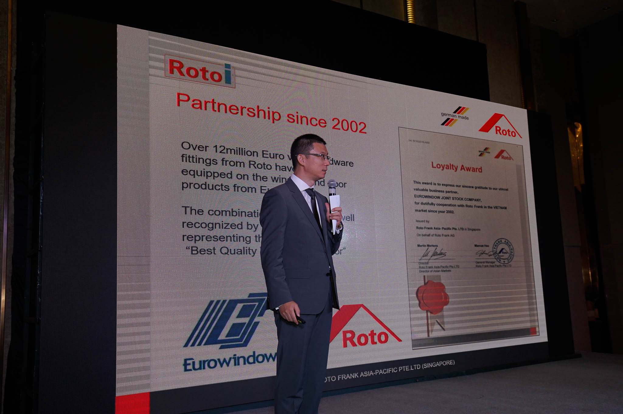 Là đối tác chiến lược và là nhà cung cấp độc quyền của một số thương hiệu uy tín hàng đầu thế giới trong ngành vật liệu xây dựng, hơn 15 năm qua, Eurowindow đã nhận chuyển giao các công nghệ tiên tiến, hiện đại, thiết kế kỹ thuật mới và kiểm soát chặt chẽ về chất lượng nguồn nguyên liệu đầu vào, mang đến cho người tiêu dùng những sản phẩm tốt nhất. Tại hội thảo “Giải pháp tổng thể về cửa và vách dựng cho ngành xây dựng”, Roto Frank – Một tập đoàn lớn đến từ CHLB Đức, hợp tác lâu năm với Eurowindow (chuyên cung cấp các sản phẩm phụ kiện cho cửa sổ và cửa đi, profile nhôm) đã trao giấy chứng nhận Eurowindow là đối tác chiến lược lâu dài tại Việt Nam.