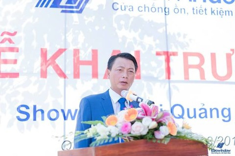 Ông Đỗ Minh Thanh - Giám Đốc Kinh doanh cửa Nhựa của Eurowindow phát biểu khai trương showroom tại Quảng Ninh