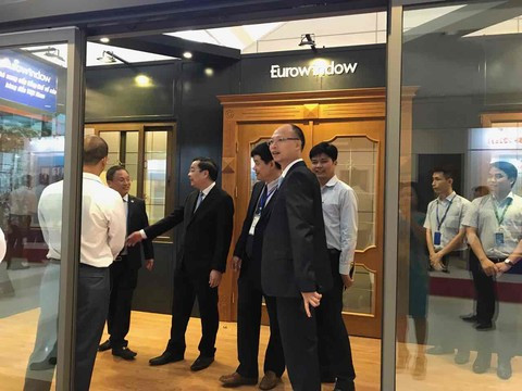 Bộ trưởng Bộ Khoa học Công nghệ Chu Ngọc Anh và các đồng chí lãnh đạo đã tham quan khu trưng bày sản phẩm của Eurowindow