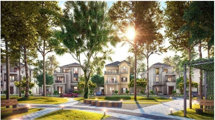 Mỗi ngôi biệt thự đều có 2 tầng lầu với phần mái được thiết kế dốc, lối vào rộng thoáng khá ấn tượng. Không gian sinh hoạt trong nhà được bố trí hợp lý, có nhiều cửa và sử dụng vách kính lớn Eurowindow để ánh sáng và gió trời có thể “thoải mái” len lỏi vào mọi ngõ ngách căn phòng.