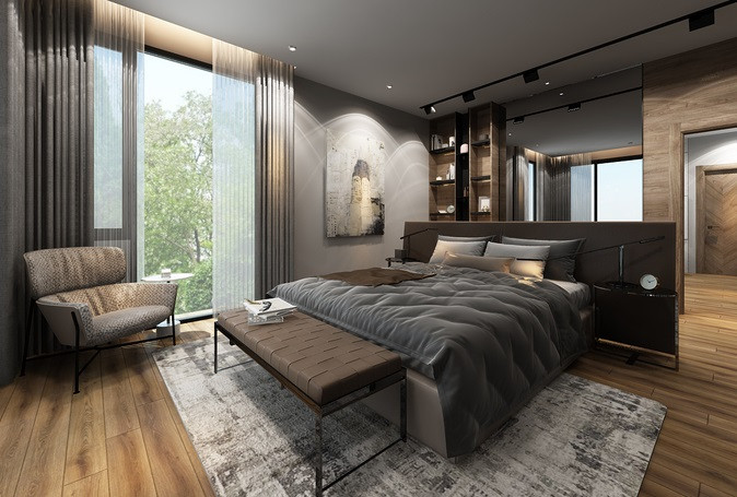Không gian riêng tư trong phòng ngủ được tùy biến tùy theo sở thích của gia chủ, nhưng vẫn toát lên nét hiện đại, ấm cúng, chan hòa cùng thiên nhiên qua khung cửa kính rộng mở.