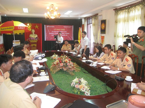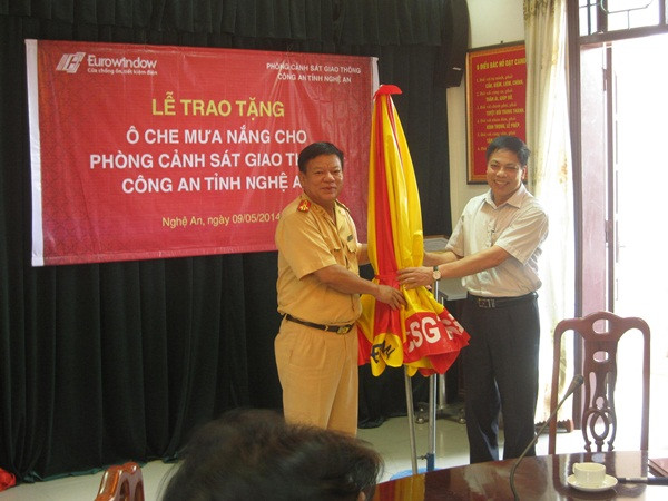 Ngày 9/5/2014 vừa qua, những chiếc ô che mưa che nắng tiếp tục được công ty Eurowindow trao tận tay tới phòng CSGT đường bộ, đường sắt tỉnh Nghệ An. Đây là đợt trao tặng ô thứ 7 cho các chiến sỹ CSGT trên địa bàn cả nước tính từ đầu năm 2014 đến nay.
