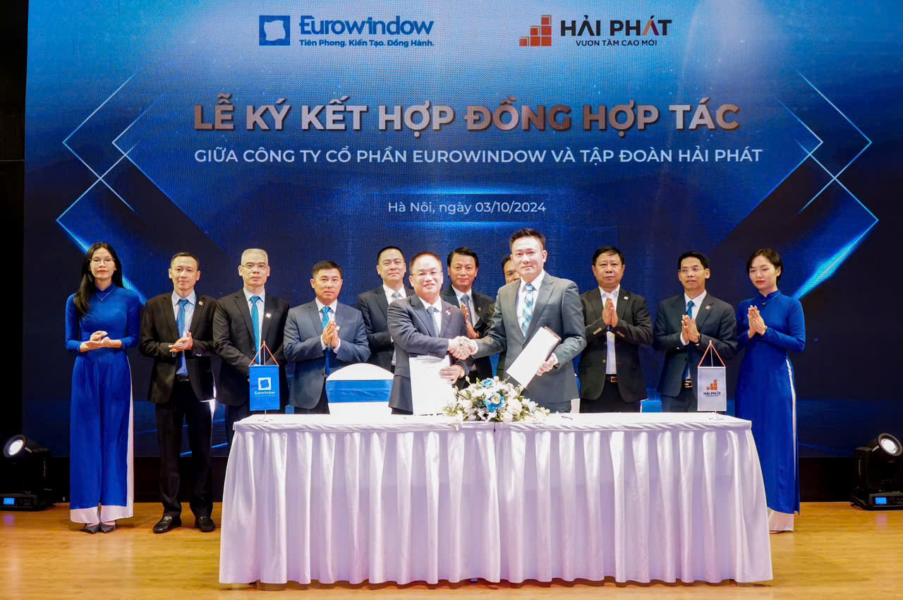 Sáng ngày 03/10/2024, Công ty Cổ phần Eurowindow và Tập đoàn Hải Phát đã long trọng tổ chức Lễ ký kết hợp đồng hợp tác chiến lược. Đây là sự kiện quan trọng, đánh dấu bước tiến mới trong mối quan hệ hợp tác lâu dài giữa hai doanh nghiệp hàng đầu trong lĩnh vực vật liệu xây dựng, xây dựng và bất động sản.