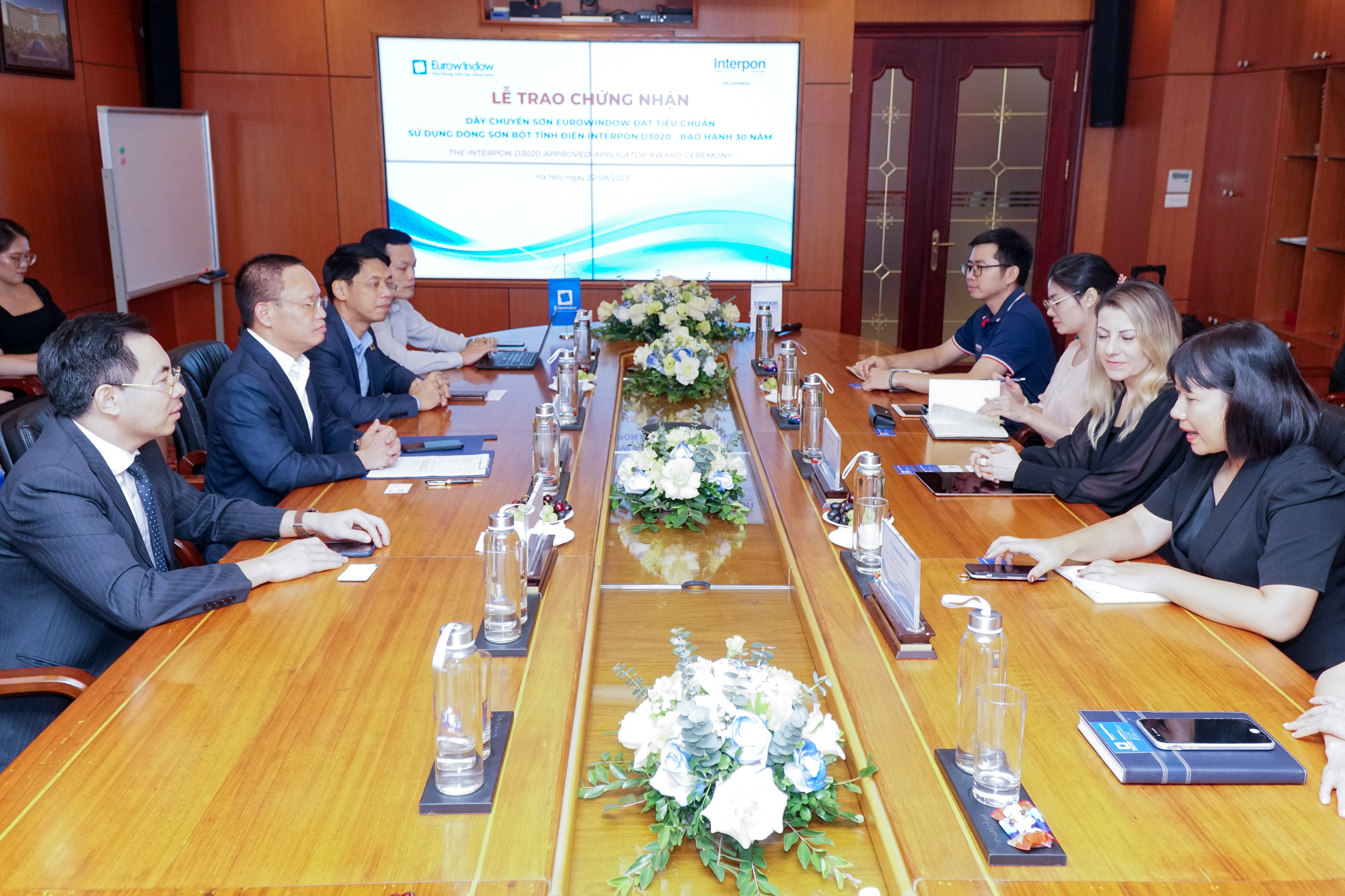 Trên tinh thần trao đổi thẳng thắn, đồng hành cùng phát triển, đại diện lãnh đạo Eurowindow tham dự buổi lễ và AkzoNobel cùng quyết tâm đưa dòng sơn bột tĩnh điện Interpon D3020 ứng dụng rộng hơn tại các công trình trong thời gian tới.