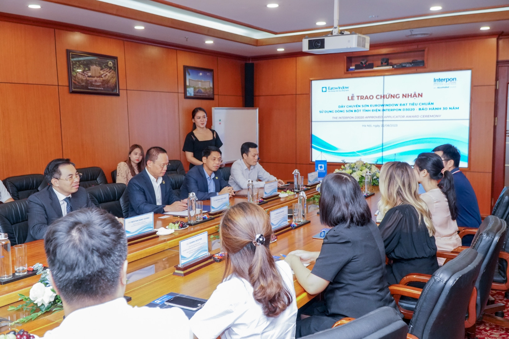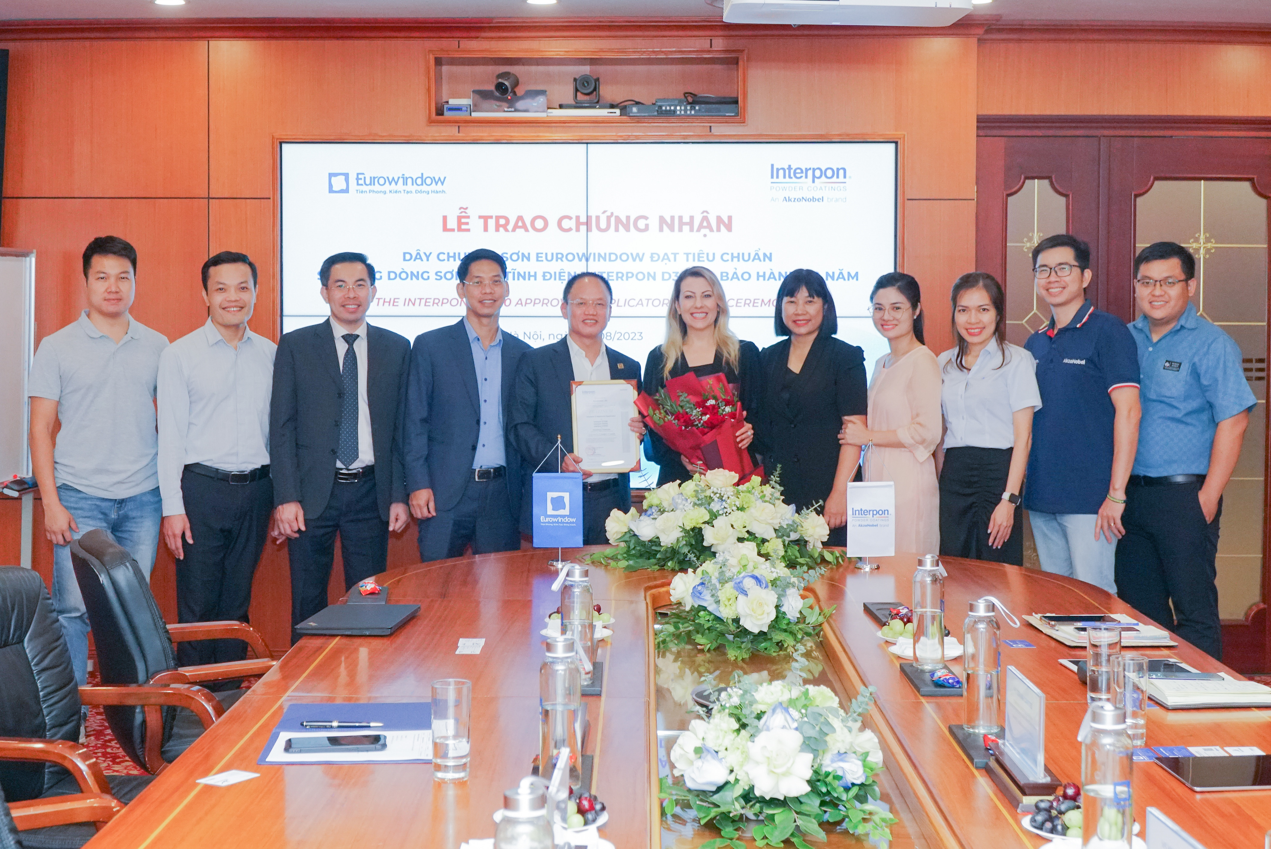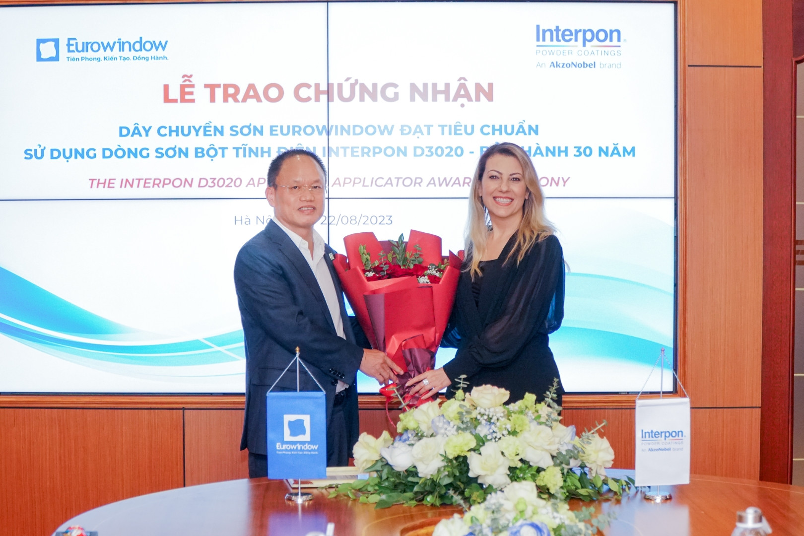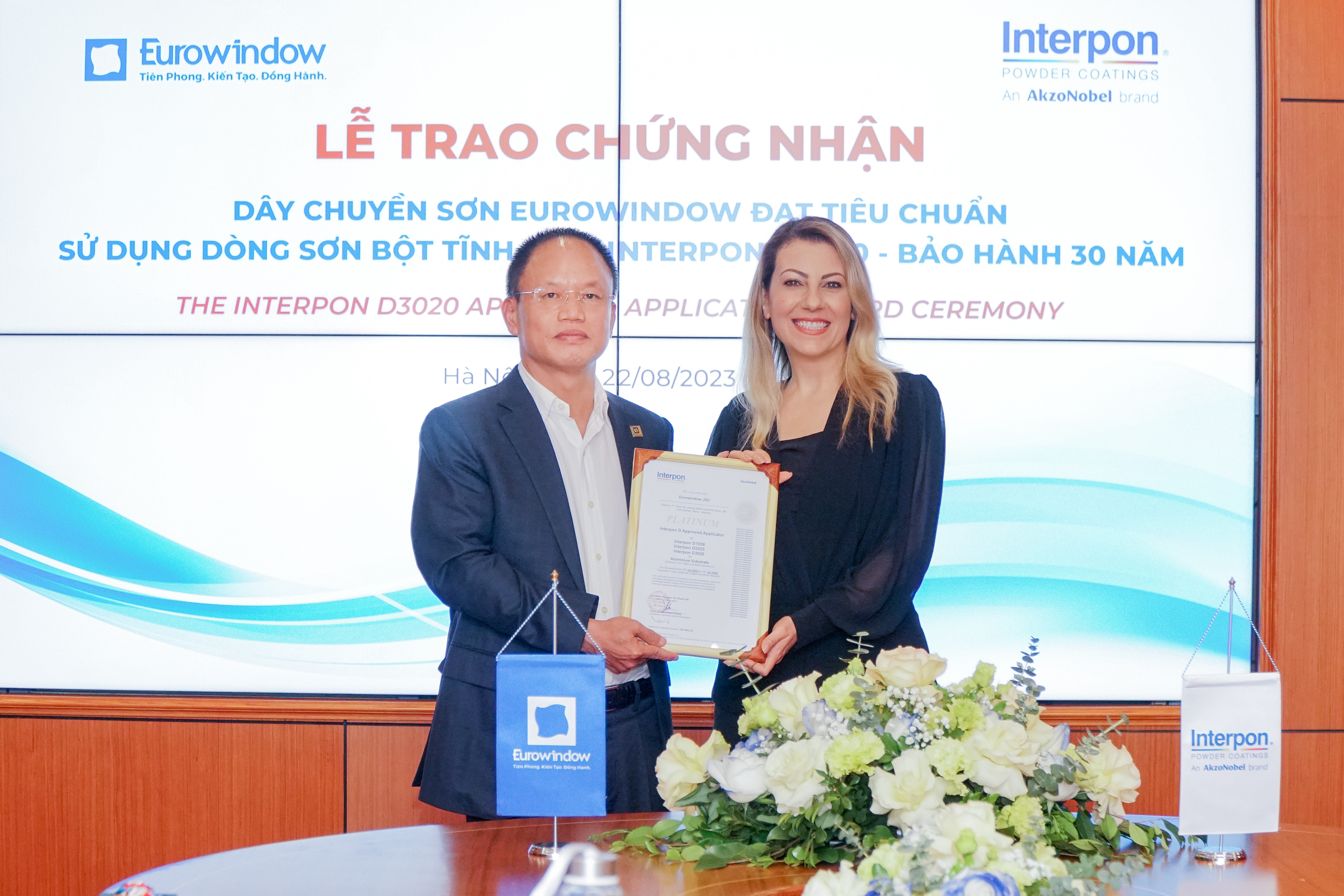 Chiều ngày 22/08, Tập đoàn sản xuất sơn và chất phủ AkzoNobel (Hà Lan) vừa trao chứng nhận dây chuyền sơn Eurowindow đạt tiêu chuẩn sử dụng dòng sơn bột tĩnh điện Interpon D3020 với thời gian bảo hành lên tới 30 năm.
