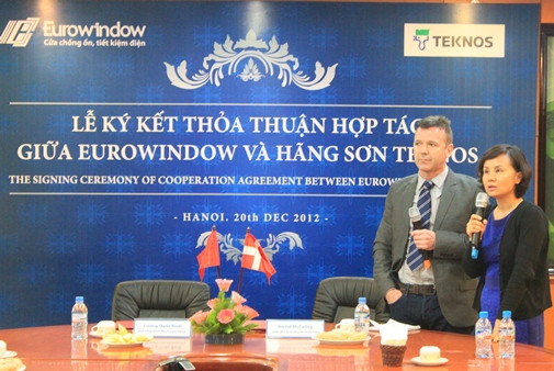Phát biểu tại buổi lễ ông David McCulley, Giám đốc Kinh doanh chiến lược hãng Teknos cho biết: “Chúng tôi đã nghiên cứu kỹ thị trường Việt Nam và bỏ ra hơn 1 năm để thử nghiệm sản phẩm sơn trong các nhà máy của Eurowindow. Teknos nhận thấy Eurowindow là công ty tiên phong trong việc áp dụng những công nghệ tiên tiến để sản xuất ra những sản phẩm có chất lượng tốt nhất nên đã lựa chọn Eurowindow là đối tác chiến lược, quan trọng của mình tại thị trường Việt Nam. Chúng tôi rất vui mừng được cùng với Eurowindow cung cấp ra thị trường những sản phẩm đáp ứng được các tiêu chuẩn quốc tế, thân thiện với môi trường và an toàn với sức khỏe của con người”.