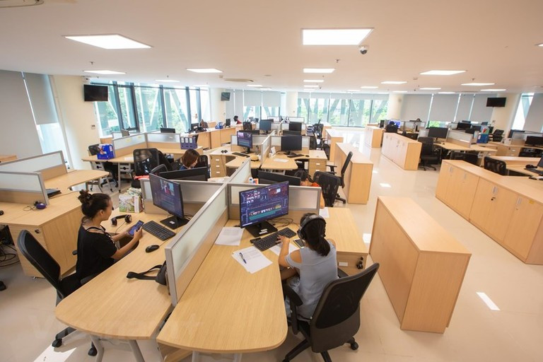 Khu văn phòng làm việc tại đây được bố trí theo phong cách tòa soạn hội tụ. được bao ngoài bởi vách nhôm kính lớn Eurowindow giúp mở rộng tầm nhìn