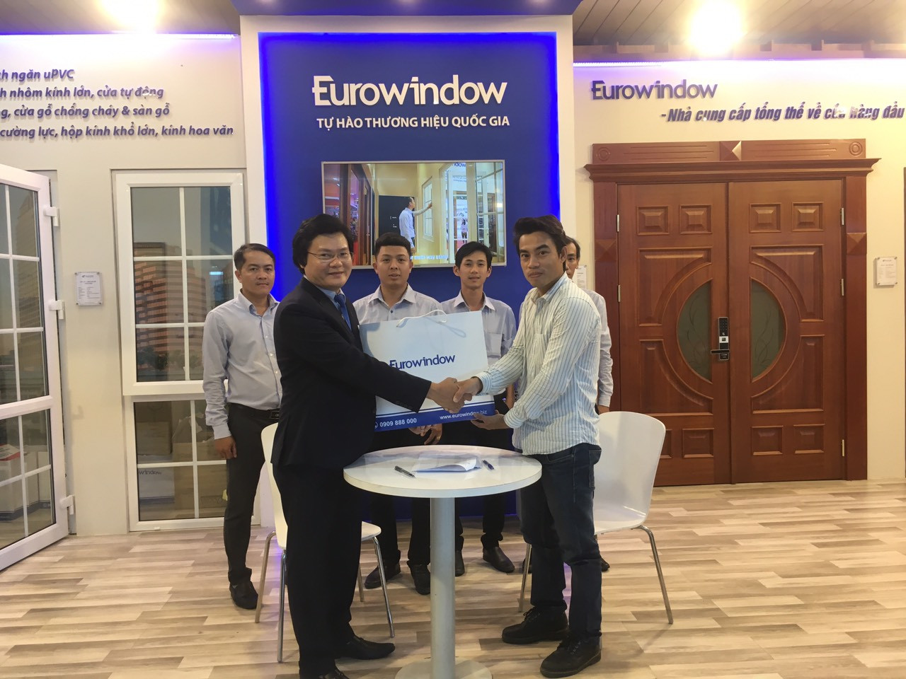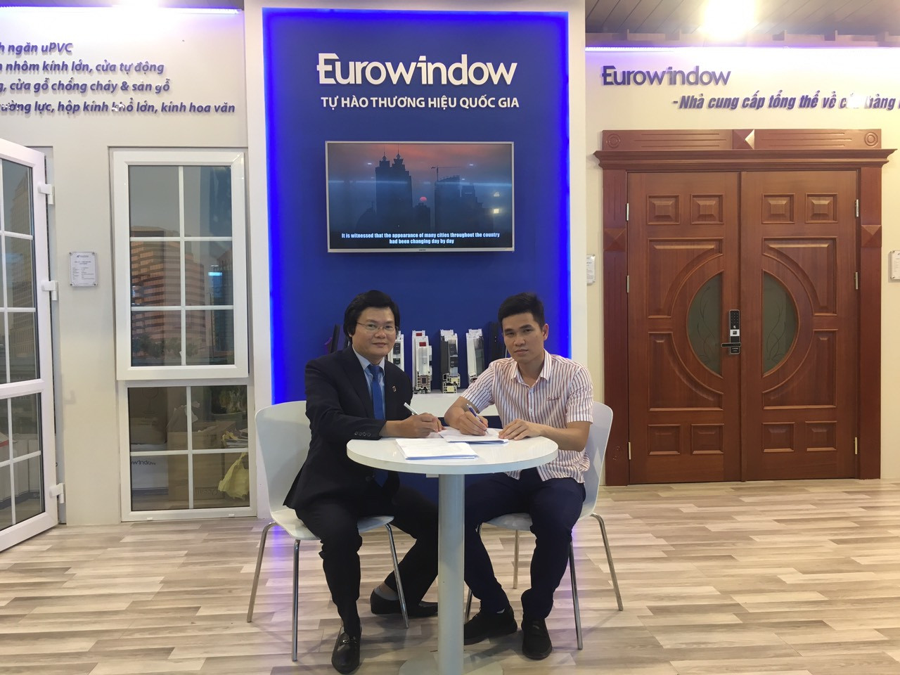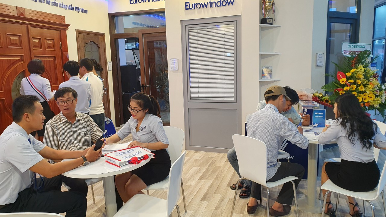 Khách hàng tham quan, ký hợp đồng lắp đặt sản phẩm cửa và vách nhôm kính lớn Eurowindow sau khi được đội ngũ NVKD chi nhánh tư vấn tận tình