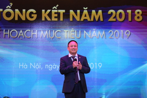 Tổng giám đốc Nguyễn Cảnh Hồng thay mặt BLĐ công ty tổng kết lại kết quả năm 2018