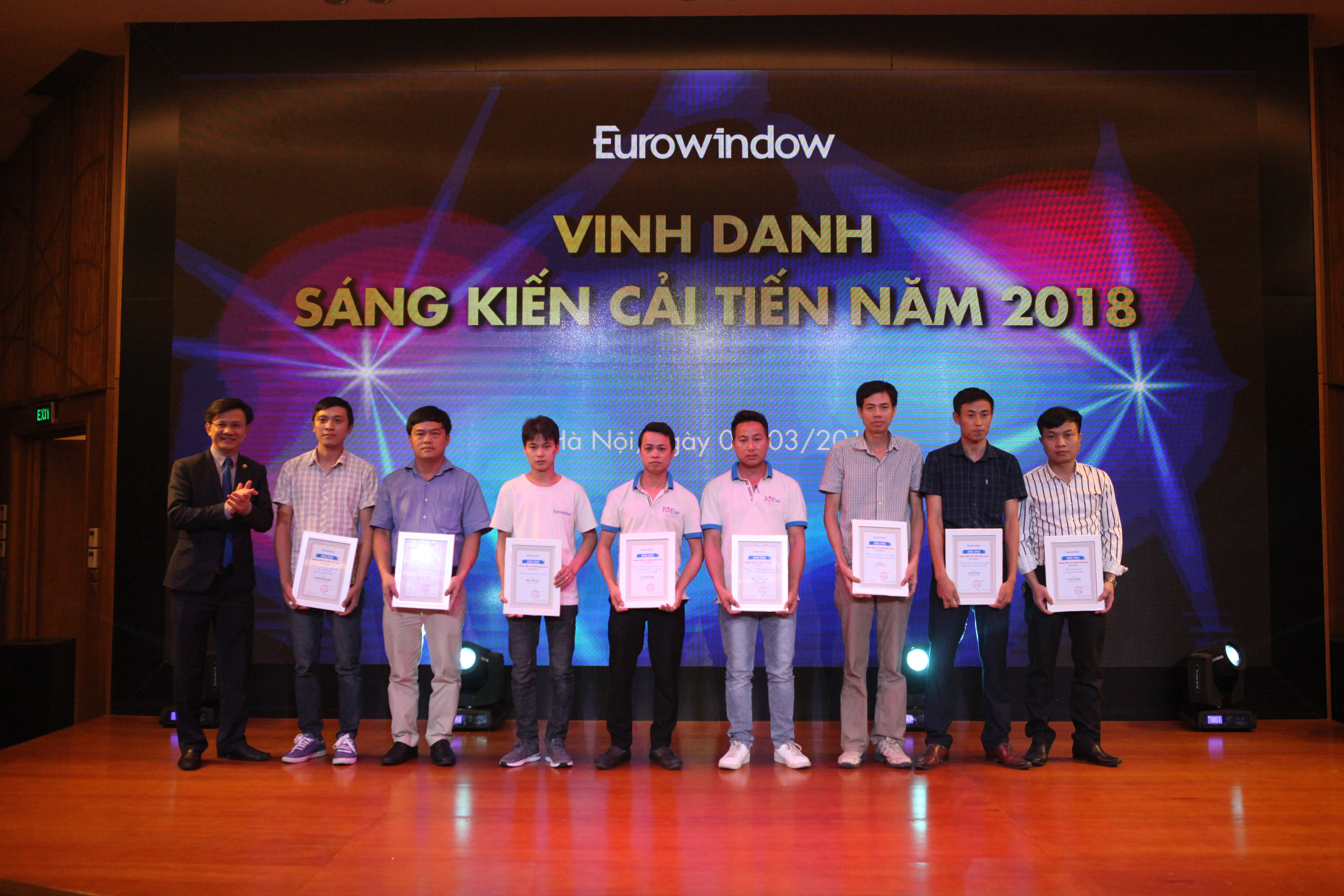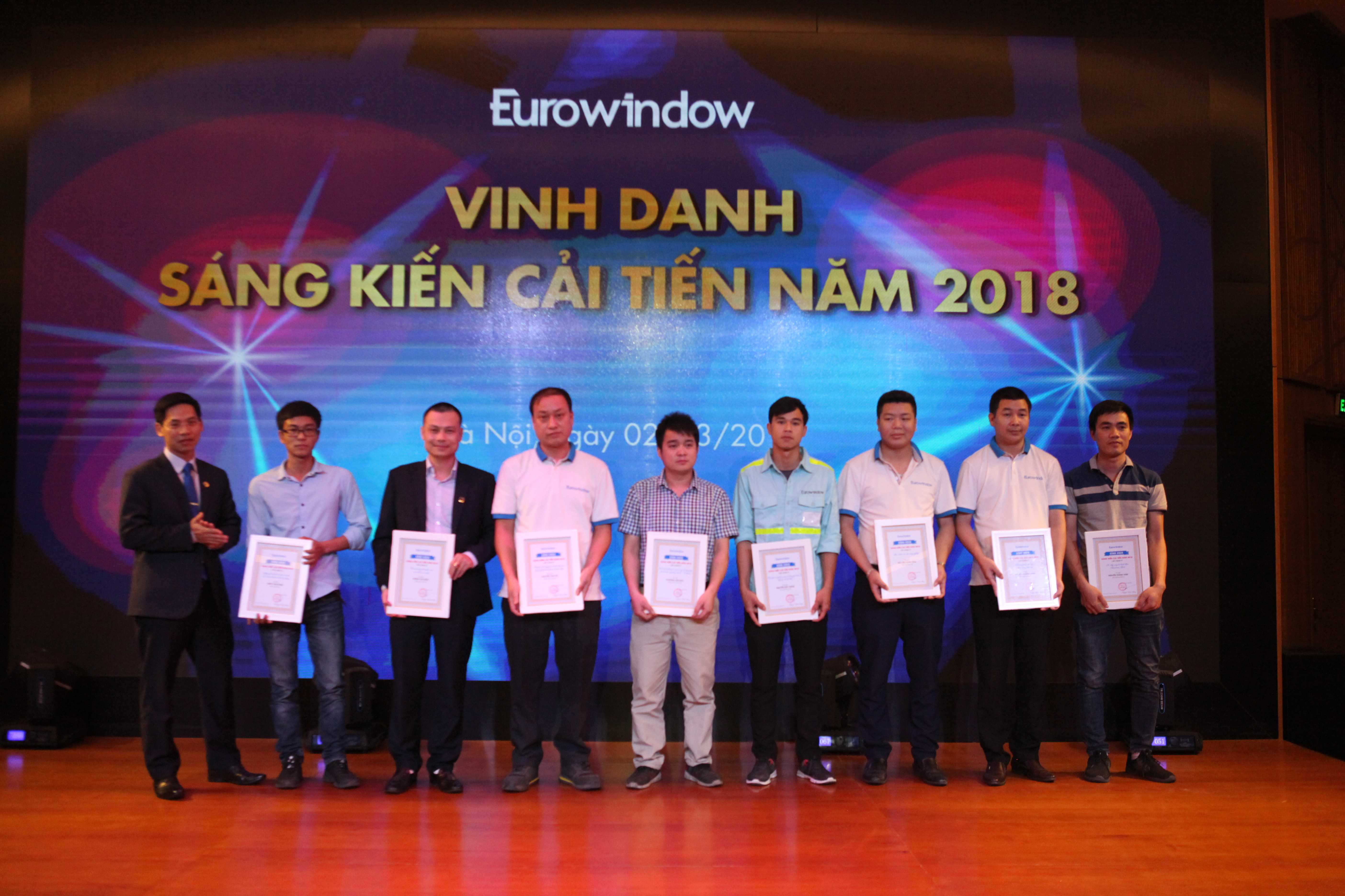 Năm 2018, tiếp tục đánh giá cao lợi ích về mặt kinh tế và vai trò tích cực của phong trào sáng kiến cải tiến đối với công tác khuyến khích nội bộ công ty nỗ lực hoàn thành mục tiêu đề ra, BLĐ Eurowindow đã phát động phong trào sáng kiến cải tiến trên toàn quốc và nhận được sự hưởng ứng của đông đảo CBCNV. Năm 2018, toàn công ty đã ghi nhận 192 sáng kiến cải tiến (SKCT), trong đó có 44 SKCT cấp công ty và 148 SKCT cấp Đơn vị/ Phòng ban. Đây là bằng chứng thuyết phục khẳng định năng lực sáng tạo cũng như tâm huyết của tập thể CBCNV Eurowindow trong việc đóng góp cho sự phát triển của Công ty. Cũng tại buổi lễ, ban lãnh đạo Eurowindow đã vinh danh những CBCNV tiêu biểu có sáng kiến cải tiến cấp công ty năm 2018.