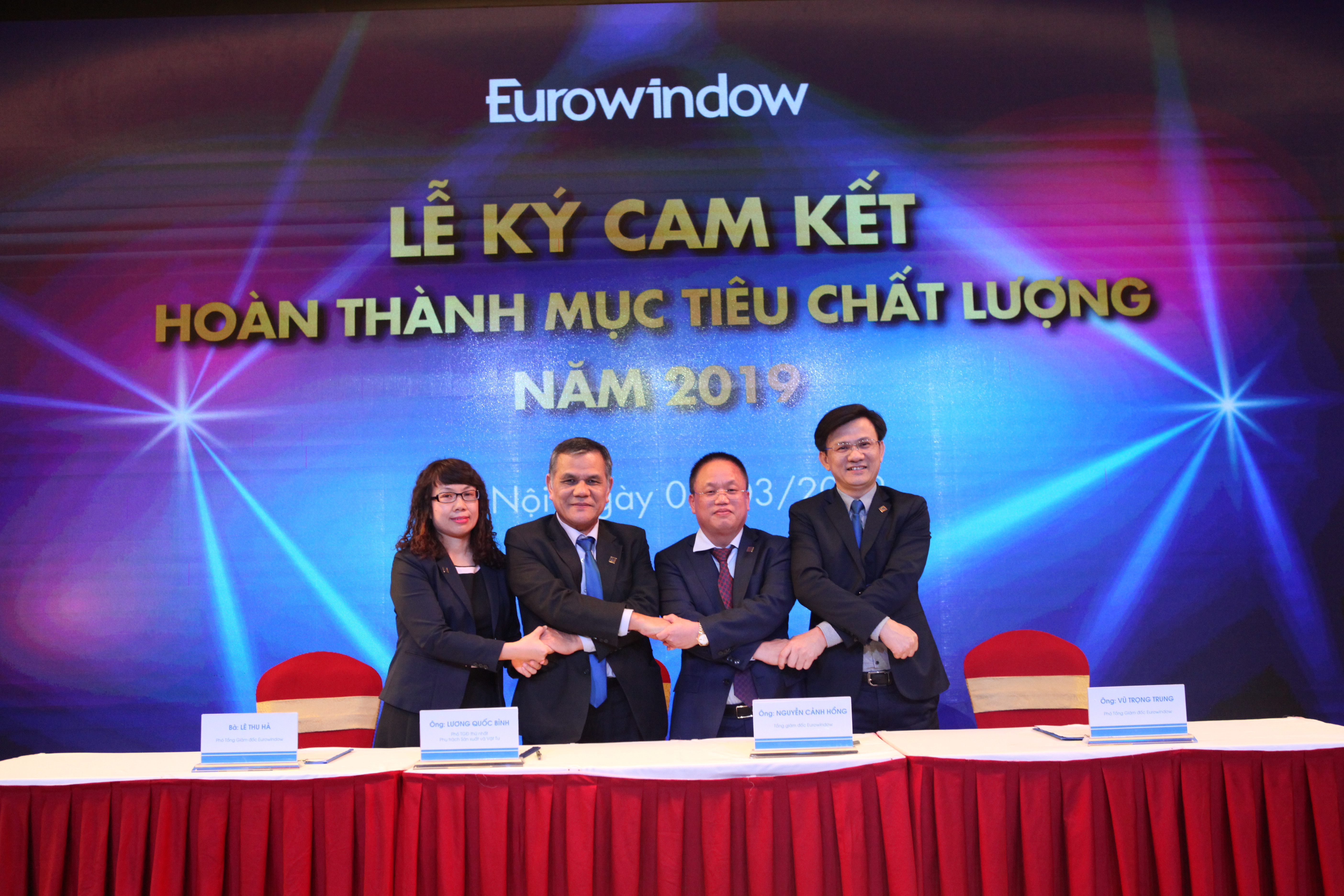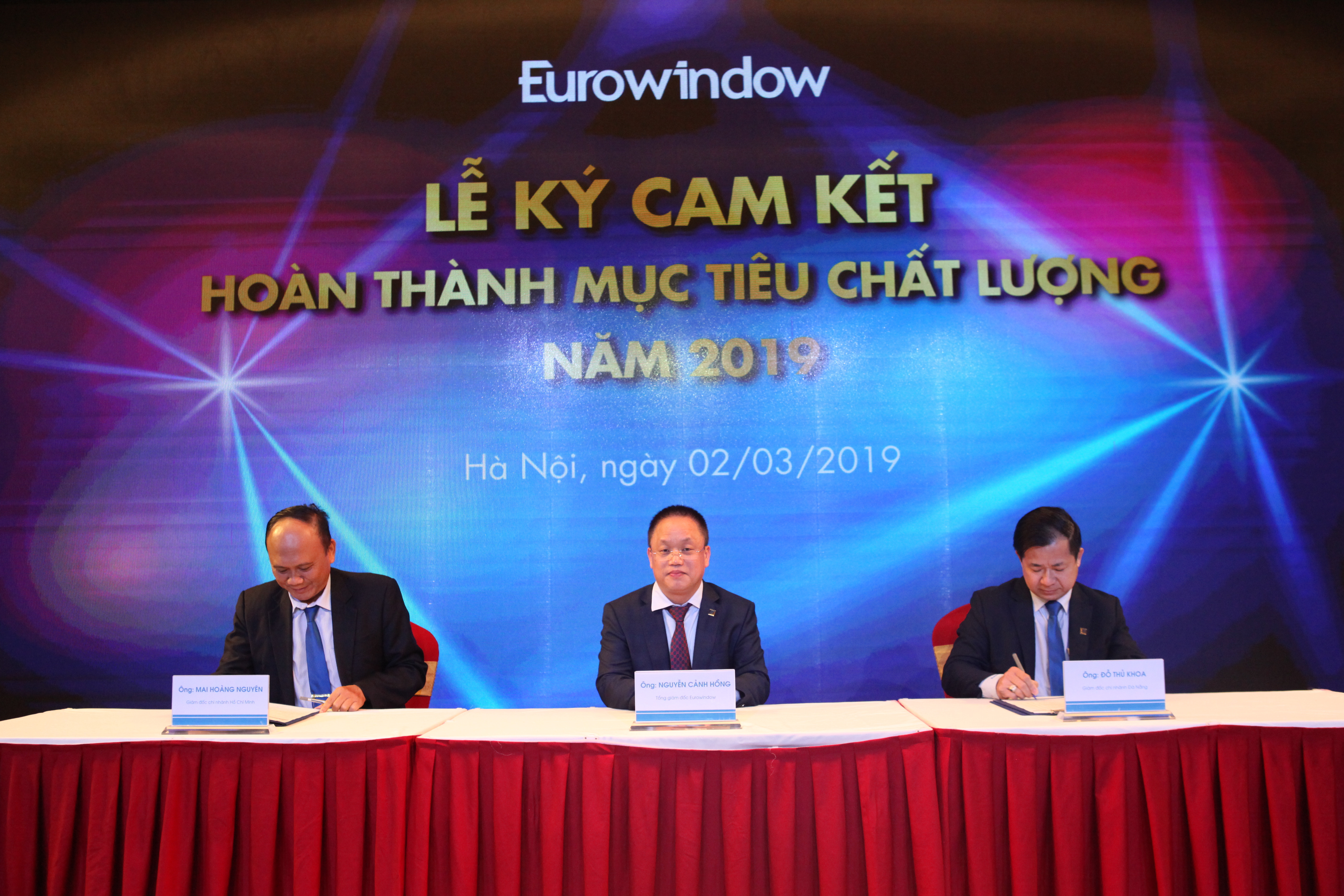 Phát biểu mở đầu tại buổi lễ, Tổng giám đốc Nguyễn Cảnh Hồng cho biết: “Năm 2018 vừa qua, toàn thể CBCNV đã cố gắng, nỗ lực hướng tới mục tiêu kế hoạch đề ra, nhưng một số chỉ tiêu đã không đạt được như cam kết, trong đó doanh số đạt 93,4%, số lượng sản phẩm mới đạt 40%; mục tiêu chất lượng toàn công ty đạt 84,84%. Tuy nhiên, Eurowindow đã có sự tăng trưởng cao trong đó doanh số tăng 30% và tỷ lệ khách hàng hài lòng tăng 102% so với năm 2017. Để đạt được kết quả như năm 2018 vừa qua, thay mặt Ban lãnh đạo công ty, tôi xin cảm ơn sự nỗ lực, đồng lòng của toàn thể lãnh đạo, cán bộ công nhân viên.”