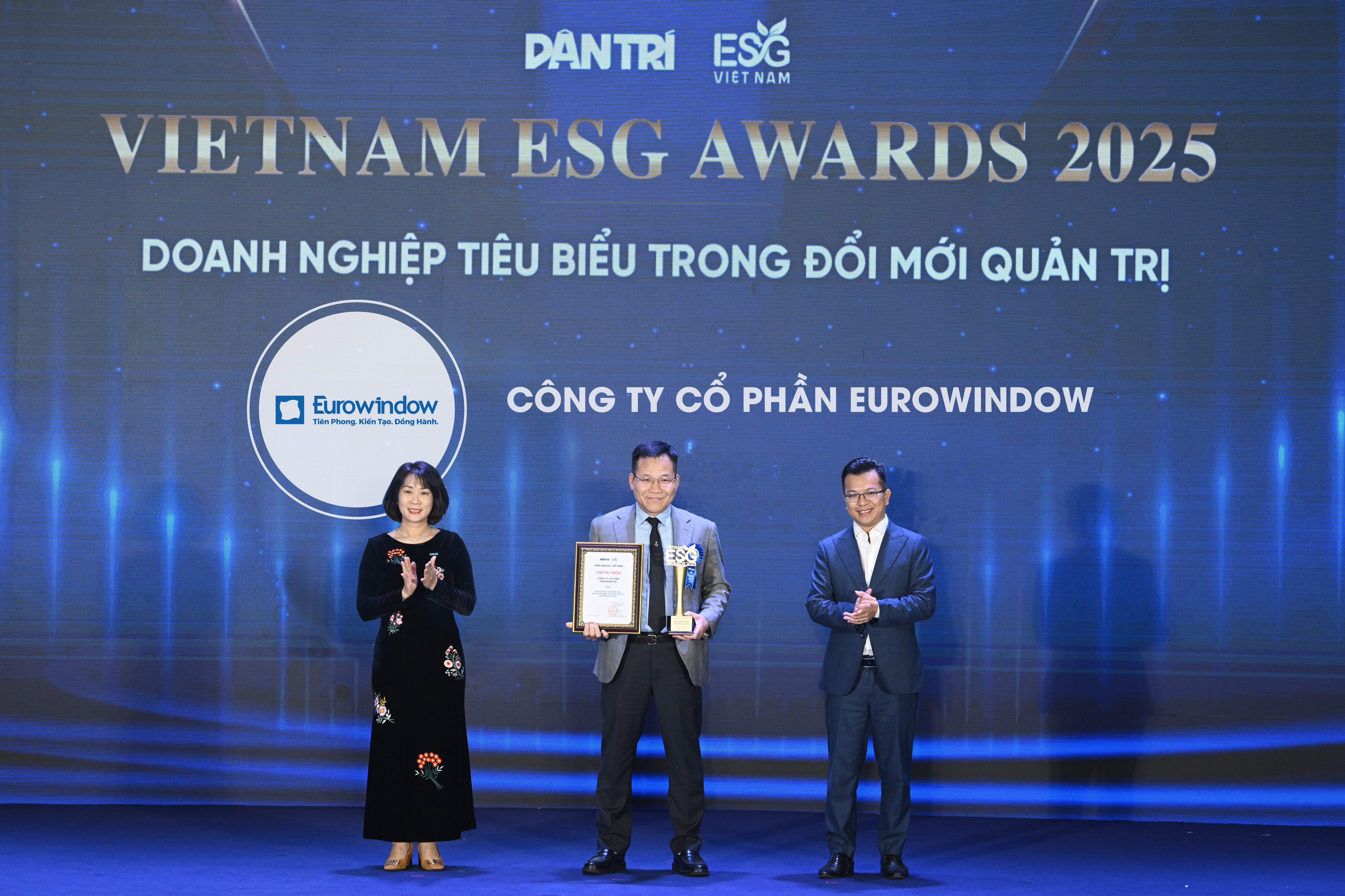 Ngày 22/12/2025, Eurowindow tiếp tục được xướng tên tại Vietnam ESG Awards 2025 – giải thưởng uy tín do Báo Dân trí tổ chức năm thứ hai liên tiếp, vinh danh doanh nghiệp nhờ những nỗ lực nổi bật trong việc triển khai chiến lược phát triển bền vững theo bộ tiêu chí ESG (Môi trường – Xã hội – Quản trị).