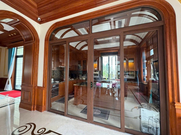 Cửa có thiết kế truyền thống, phù hợp với nhiều phong cách kiến trúc từ cổ điển, tân cổ điển đến hiện đại, thích hợp sử dụng làm cửa đi chính.