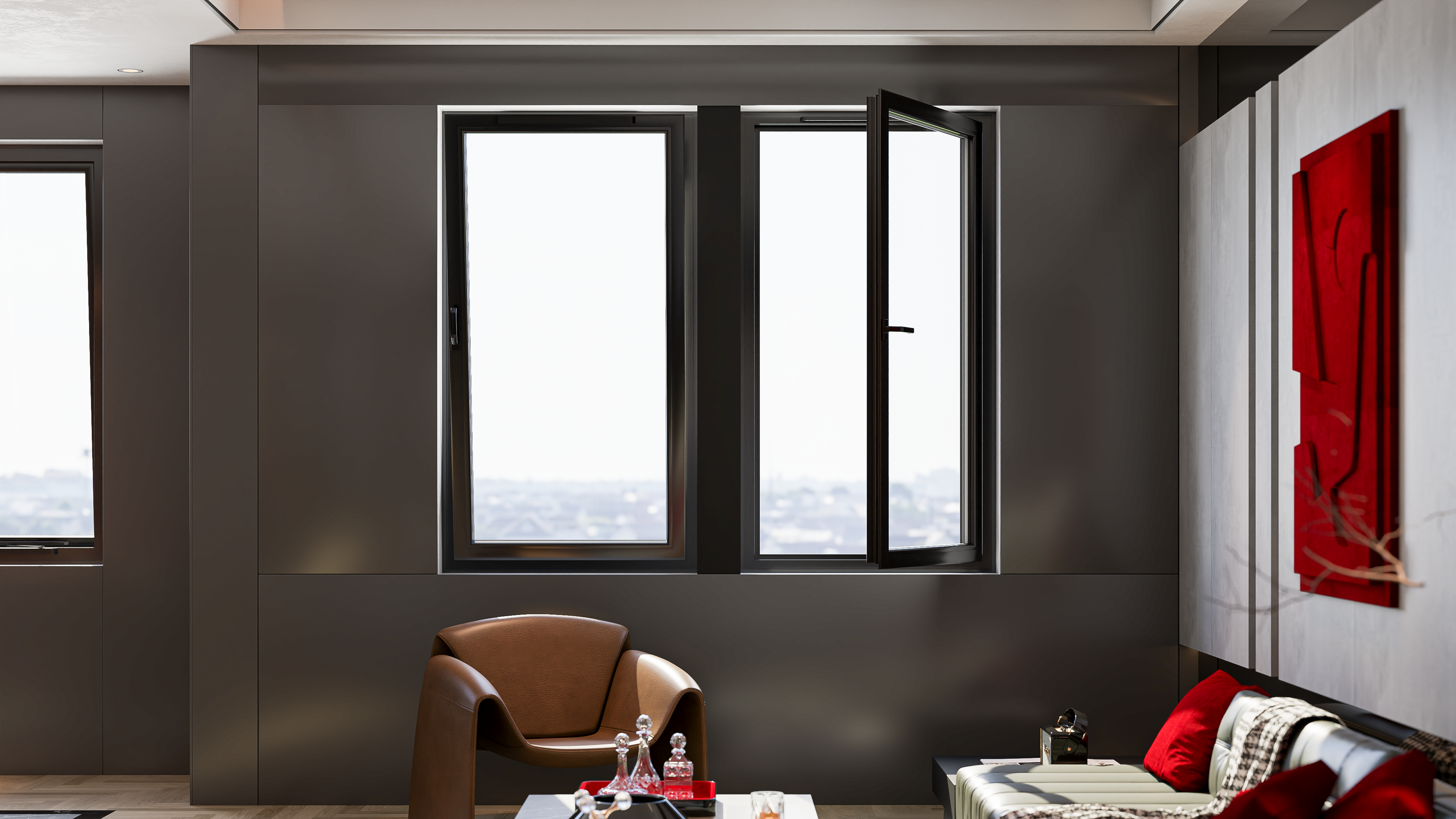 Gợi ý lựa chọn: Cửa nhôm kính hoặc uPVC cho cửa sổ và ban công; Cửa gỗ hoặc gỗ công nghiệp cho cửa phòng.