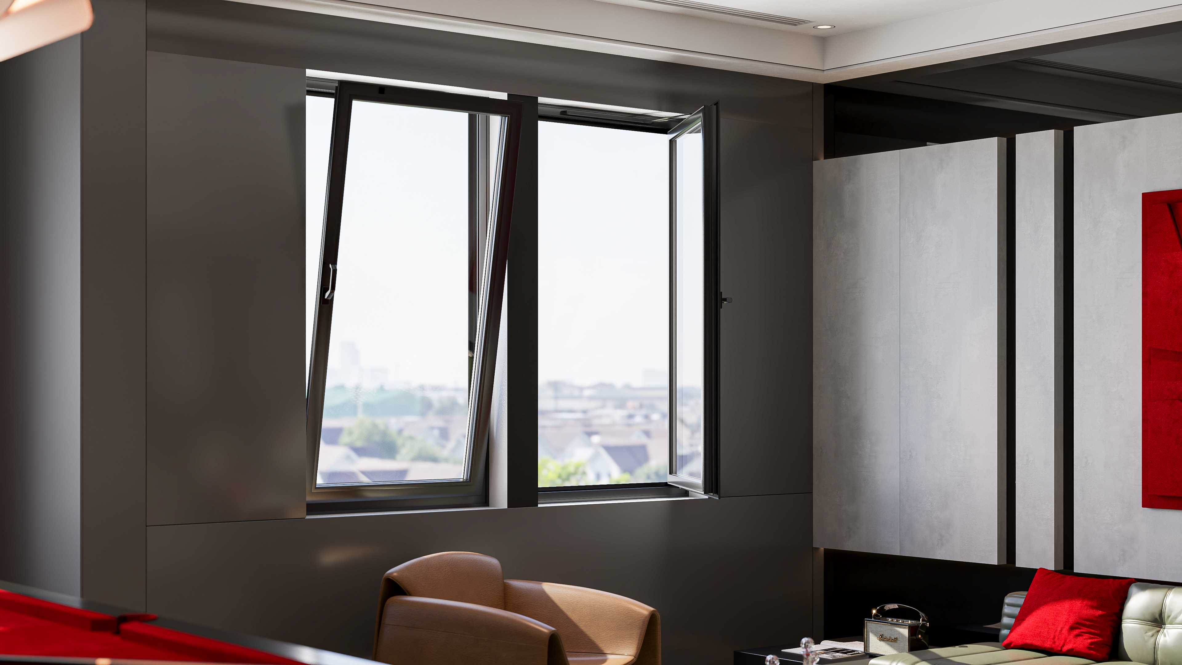 Độ kín khít và khả năng chống thấm nước cao: 03 tầng gioăng giữa khung cửa và khung cánh có rãnh cản nước giúp tăng độ kín khí, kín nước. Độ kín khí đạt Class 3 theo tiêu chuẩn BS EN 1027:2016 và độ kín nước lên tới 600 Pascal, tương đương bão cấp 11.