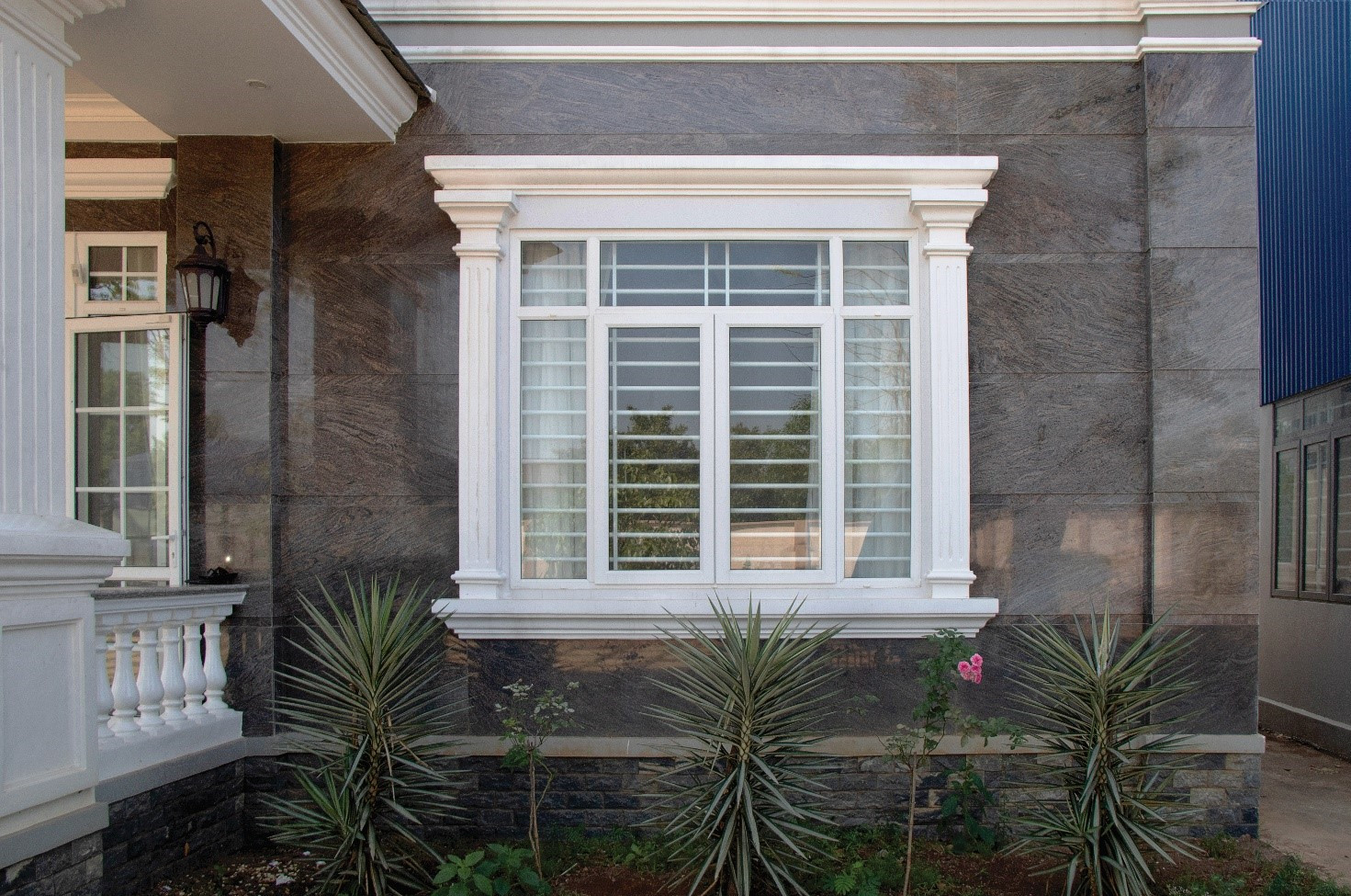 Cửa uPVC lõi thép lắp đặt ở cửa ra ban công giúp chống thấm ngược vào trong cho không gian ngôi nhà luôn khô ráo