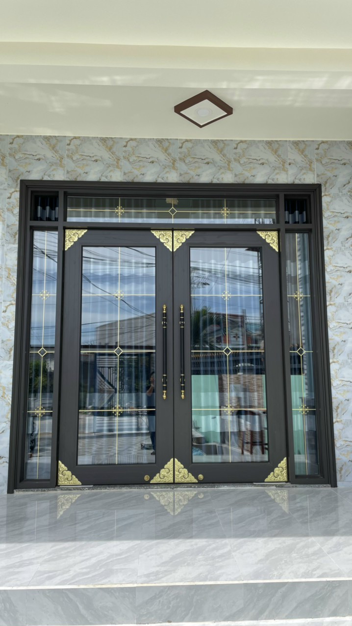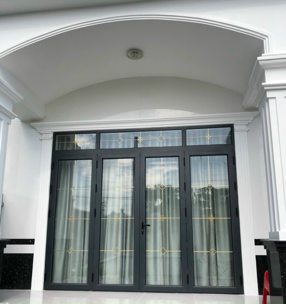 - Cửa nhôm kính hộp nan đồng: Mang lại vẻ đẹp tinh xảo, đậm chất cổ điển châu Âu. Màu vàng ánh kim của nan đồng tạo điểm nhấn nổi bật, thường được lựa chọn cho cửa đi chính các công trình biệt thự cao cấp, nhà phố, liền kề hoặc khách sạn 5 sao.