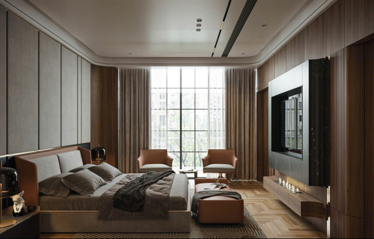 Vách kính ngăn cách phòng ngủ với các không gian khác như phòng làm việc, phòng tắm hay khu vực thay đồ là lựa chọn tuyệt vời cho những ngôi nhà phố nhỏ hẹp. Giải pháp này không chỉ giúp tiết kiệm chi phí xây dựng mà còn mở rộng không gian sử dụng, đảm bảo sự riêng tư nếu sử dụng thêm rèm che, kính mờ hoặc dán decal họa tiết.