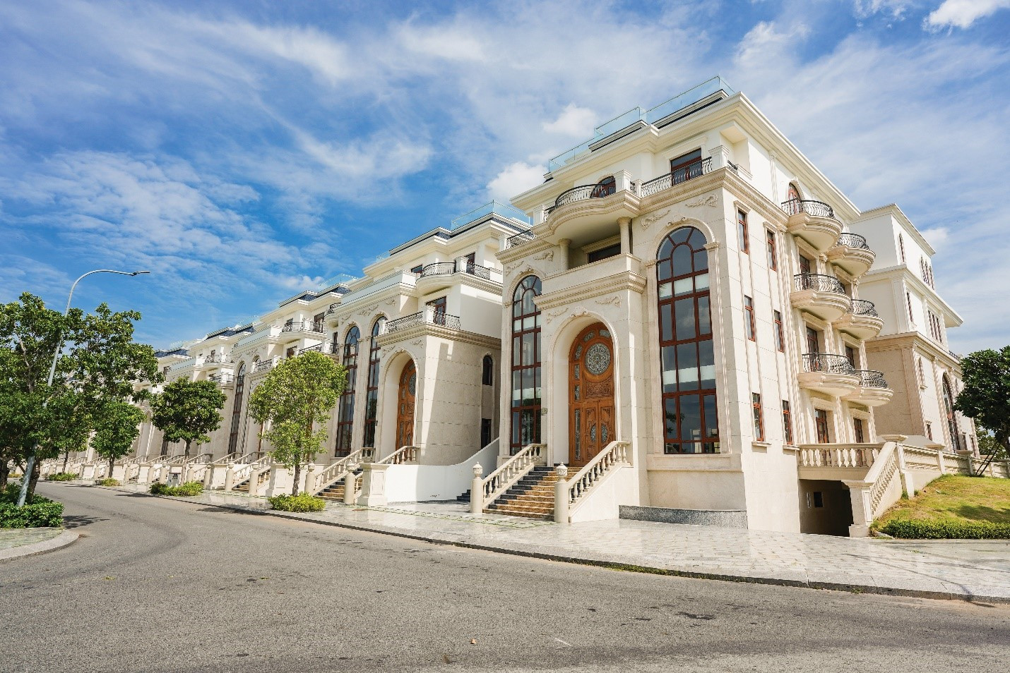 Công trình biệt thự tân cổ điển sử dụng kết hợp cửa uốn vòm và cửa hình chữ nhật.