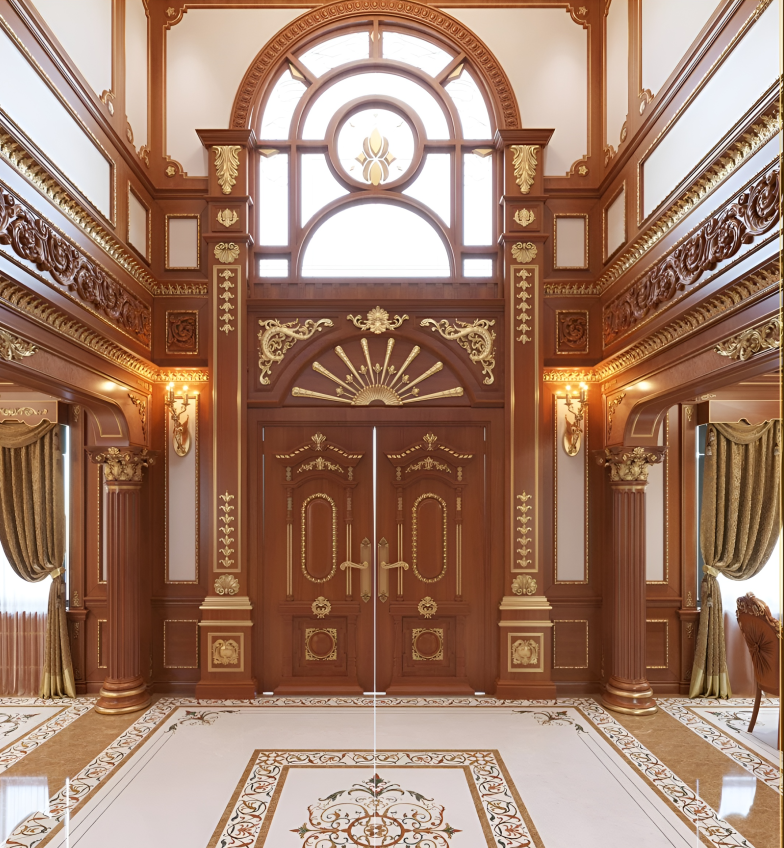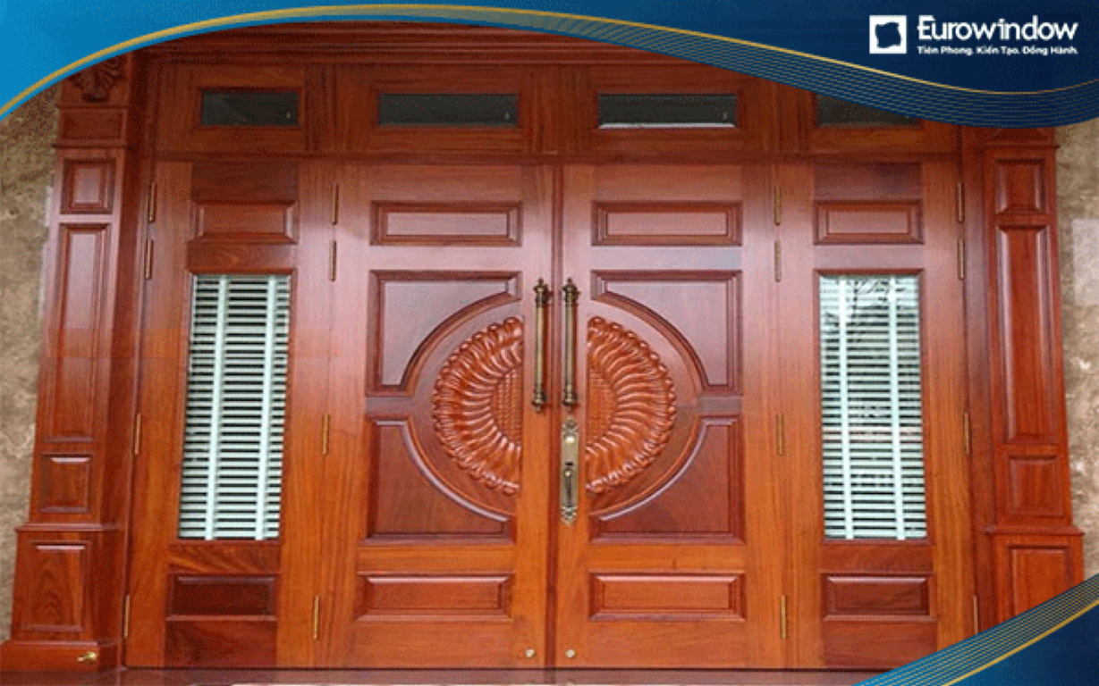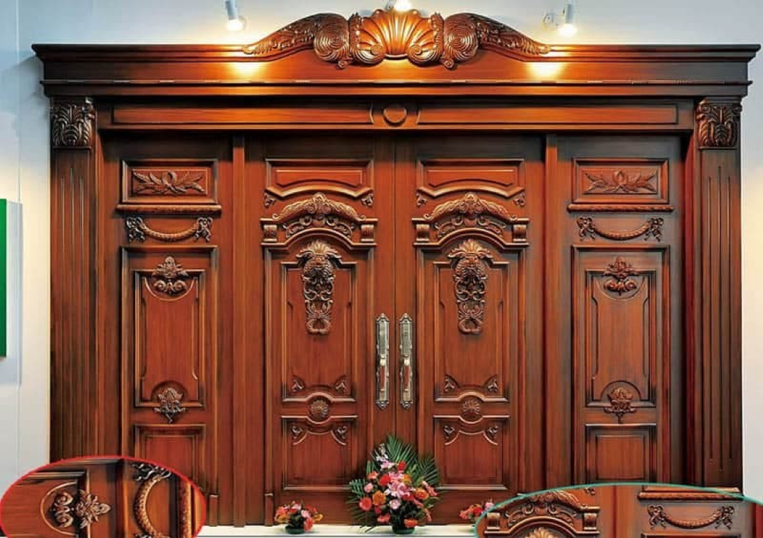 Cửa gỗ cổ điển: Chạm khắc hoa văn tinh tế, tạo vẻ sang trọng và đẳng cấp.