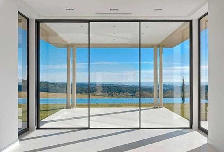 Cấu tạo cửa Slim ray treo gồm khung nhôm siêu mảnh, kính cường lực hoặc Low-E cao cấp mang đến vẻ đẹp tinh tế và hiện đại cho mọi không gian (Nguồn internet)
