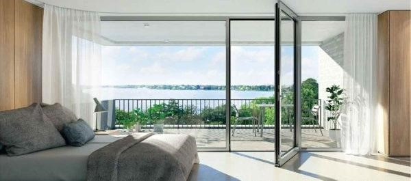 Mẫu cửa gấp trượt có thể mở rộng gần như toàn bộ diện tích lối đi, tạo không gian thông thoáng, giúp người dùng tận hưởng trọn vẹn tầm nhìn ra biển. Cửa gấp trượt có kiểu dáng thanh thoát, hiện đại, phù hợp với các công trình ven biển sang trọng.