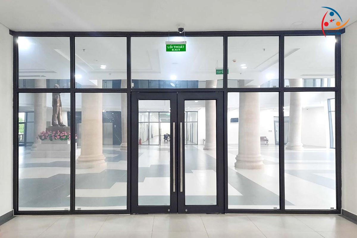 - Tòa nhà văn phòng, trung tâm thương mại: Sử dụng kính chống cháy làm vách ngăn, cửa đi hoặc khu vực kỹ thuật nhằm đảm bảo lối thoát hiểm an toàn.
